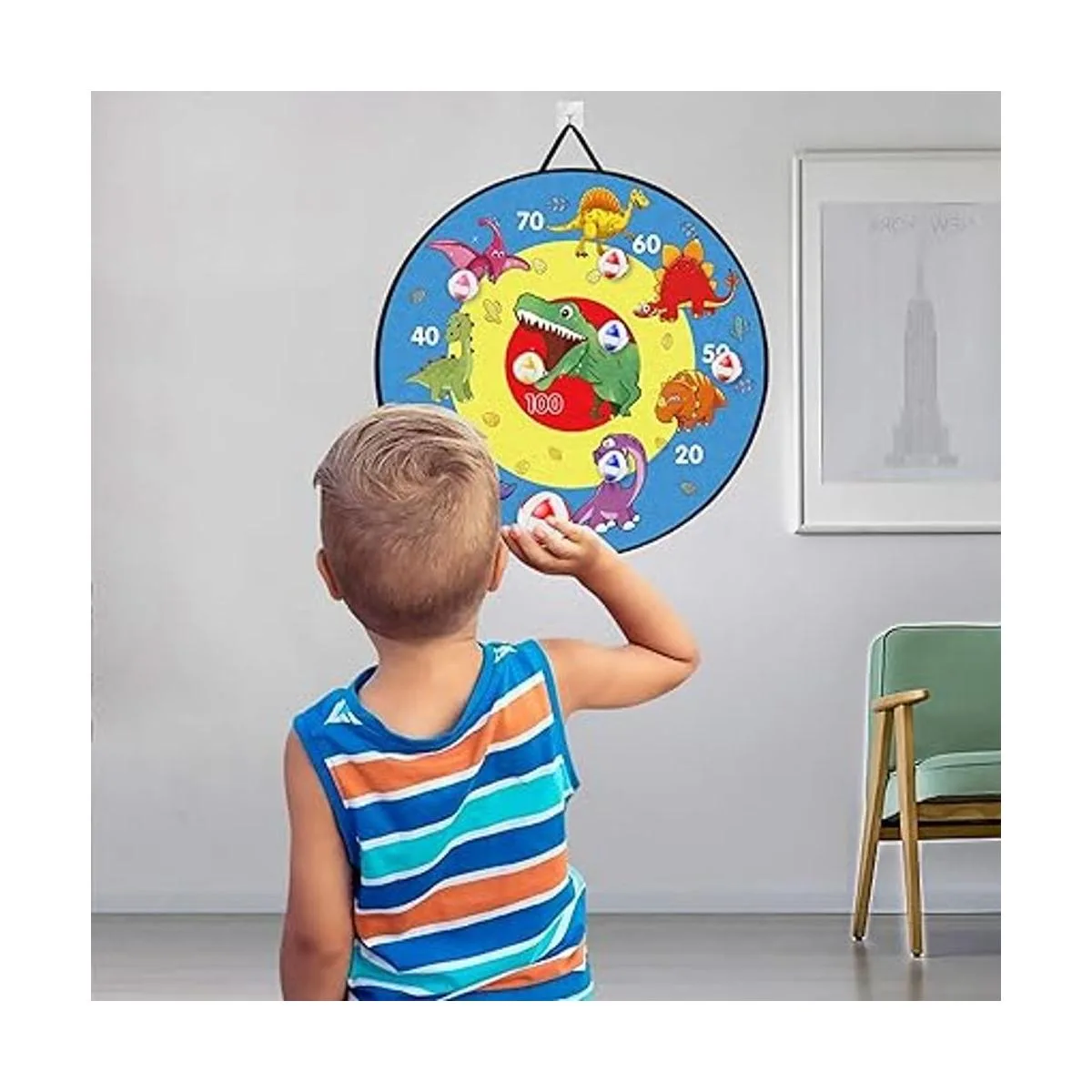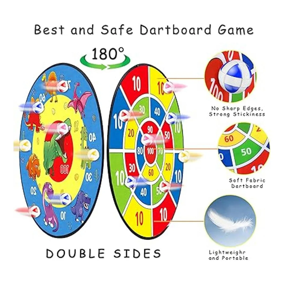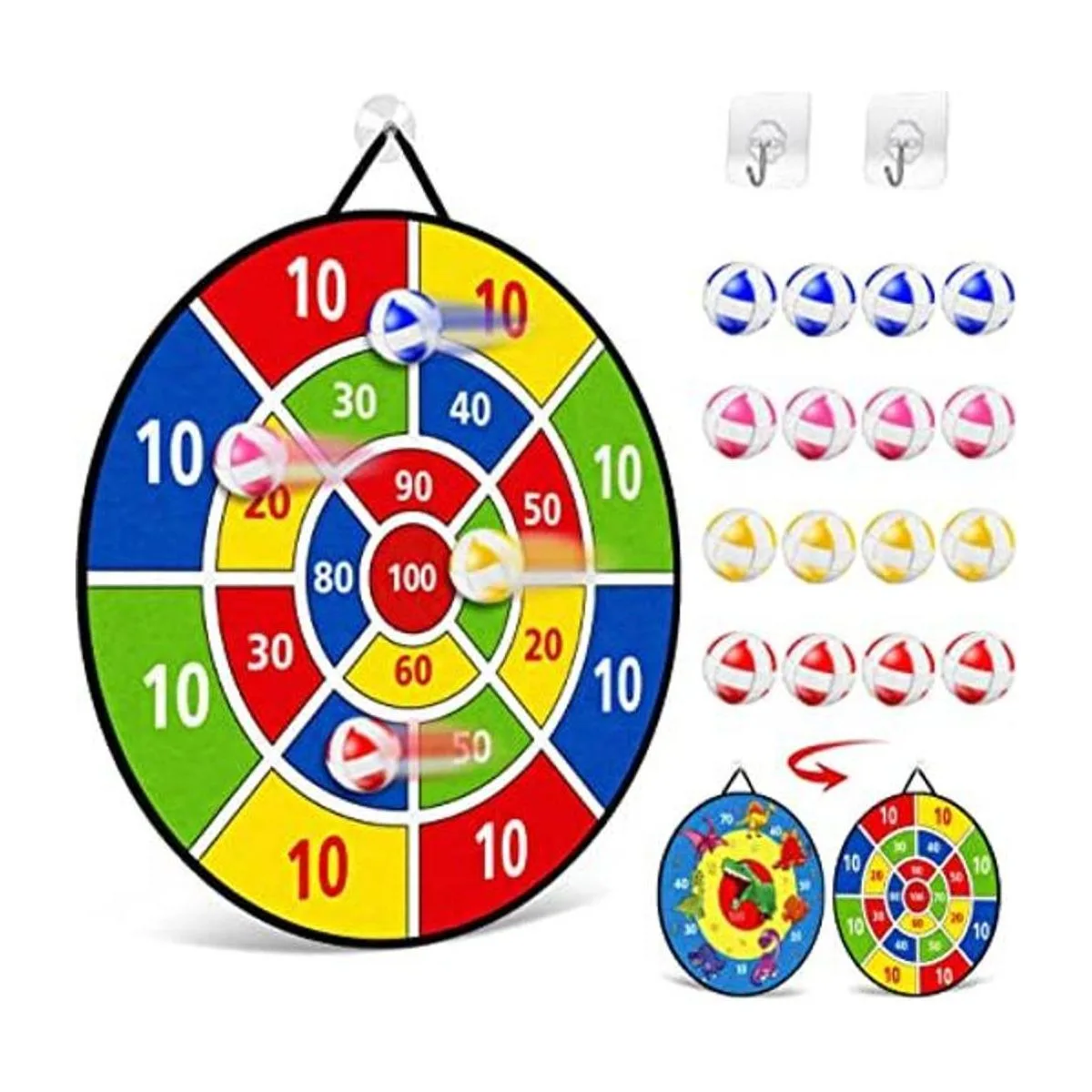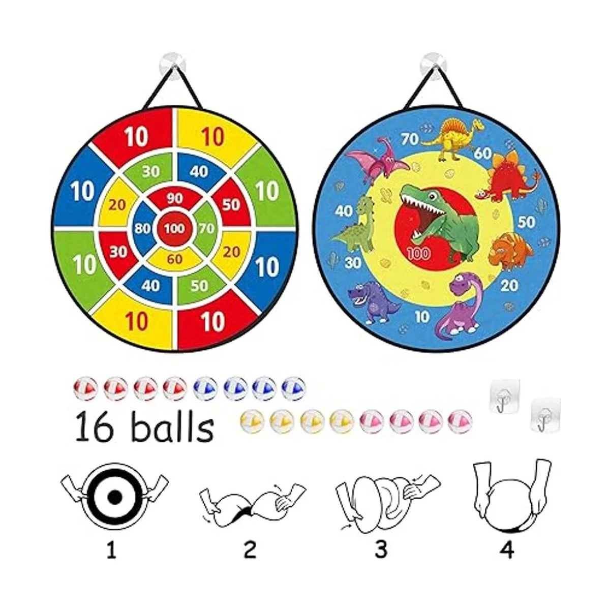 TOMYOU Tablero de dardos de 26 pulgadas para niños con 16 bolas adhesivas, tablero de dardos de dinosaurio de doble cara, juguetes de juegos de fiesta para interiores y exteriores, juguetes de cumpleaños para niños y niñas de 5, 6, 7, 8, 9, 10, 11, 12 años