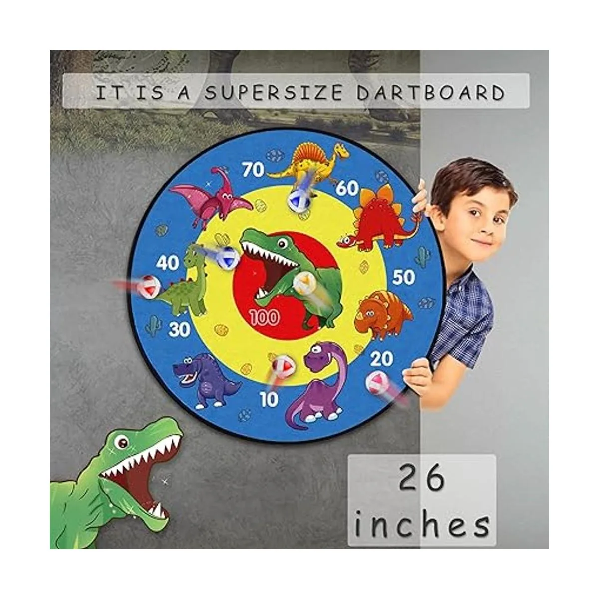 Dartboard de 26 pulgadas: juegos de patio para niños y adultos, divertido y espeluznante idea de regalo para fiestas de cumpleaños o Navidad. Un juego de dardos interior encantador, divertido y conmovedor para niños de 6 a 12 años. El regalo más genial para tu pequeño cazador de dinosaurios. El tamaño más grande significa tasas de éxito más altas y más diversión para los niños, irán a batty para este juguete novedoso