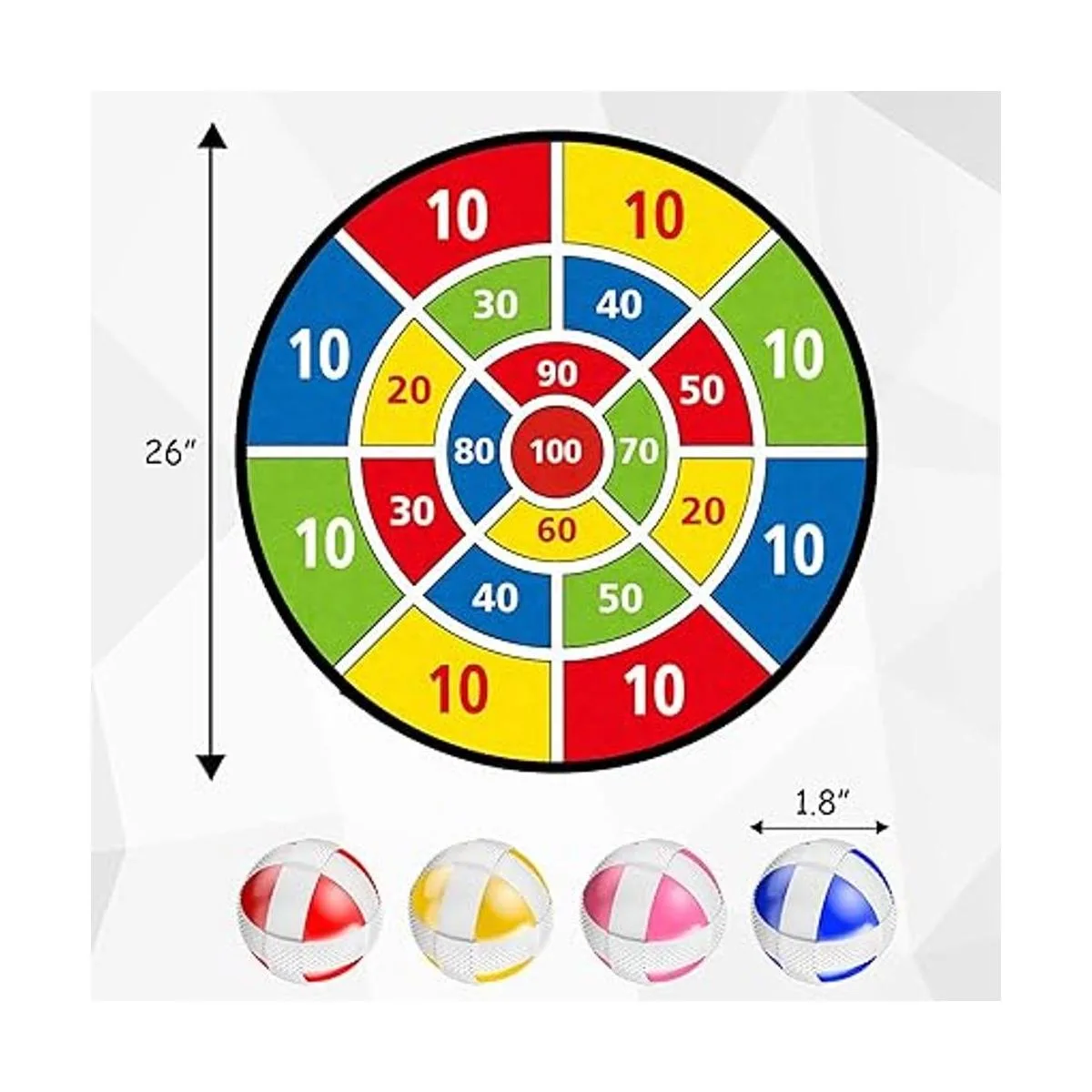 Bolas adhesivas de gran tamaño de 1.8 pulgadas: te darás cuenta de que una gran bola adhesiva puede crear un ambiente alegre para la fiesta. Cada juego de tablero de dardos contiene 16 bolas adhesivas coloridas 4 azules y 4 rojos, 4 amarillos y 4 rosas. Bola de velcro de alta calidad y segura que garantiza que la bola se pueda fijar firmemente al tablero.