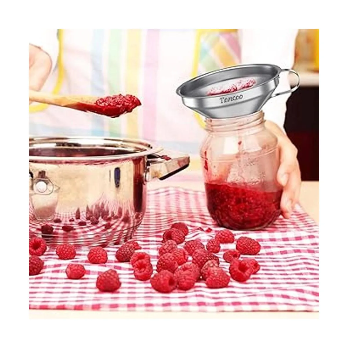 Toncoo Embudo de acero inoxidable de alta calidad de 5 pulgadas con filtro de alimentos de 200 malla, embudos de cocina de grado alimenticio para llenar botellas, embudo de metal con colador, embudo de alimentos para cocina