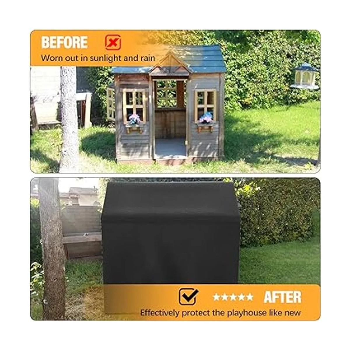 tonhui Funda impermeable para casa de juegos al aire libre, funda impermeable para niños, jardín de campo, 57 pulgadas de largo x 57 pulgadas de ancho x 63 pulgadas de alto, cubierta de madera para casa de juegos de patio trasero, resistente a la lluvia y al sol