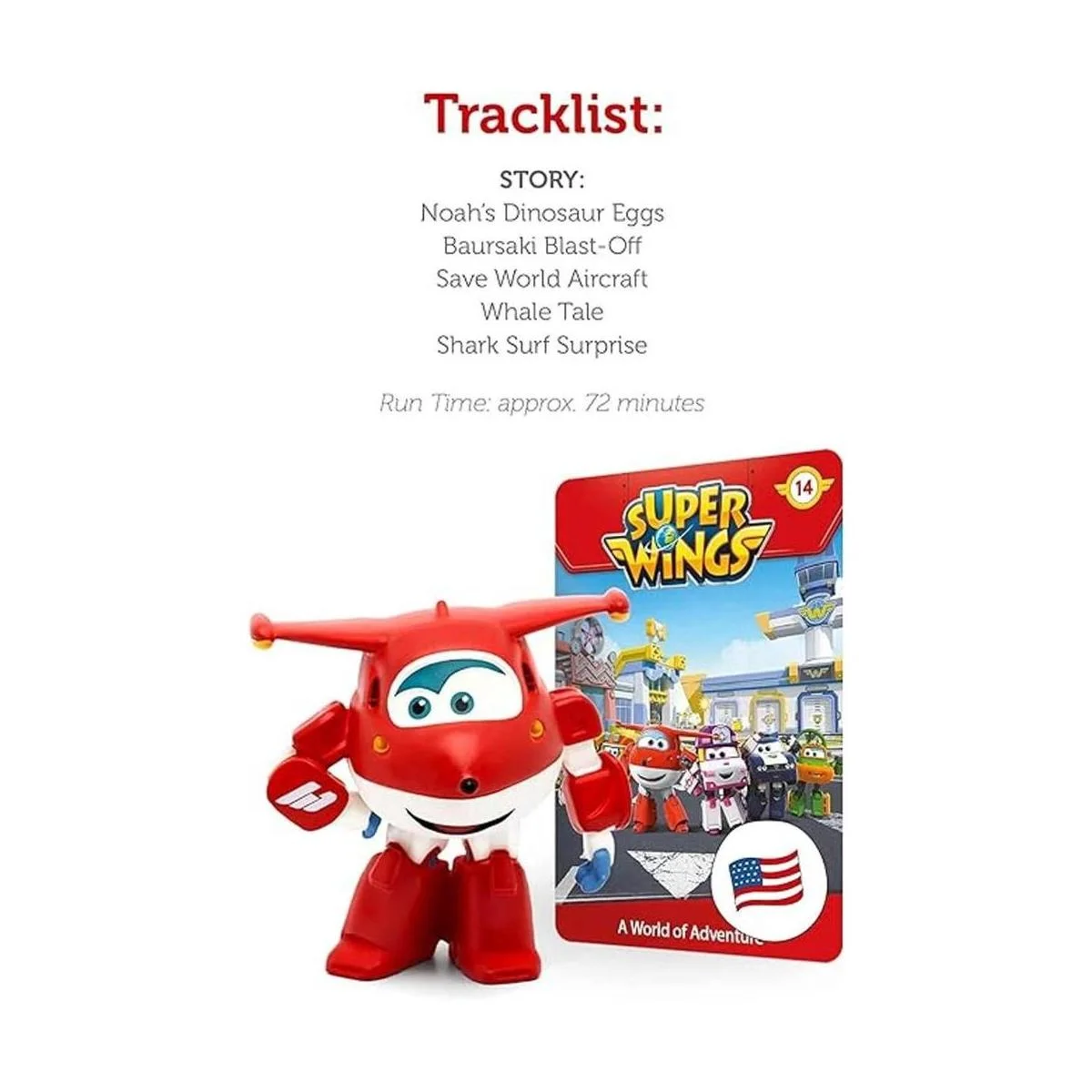 Incluye personaje de juguete Super Wings con 5 historias y tiempo total de funcionamiento de aproximadamente 72 minutos. Rango de edad recomendado: 3, idioma: inglés.