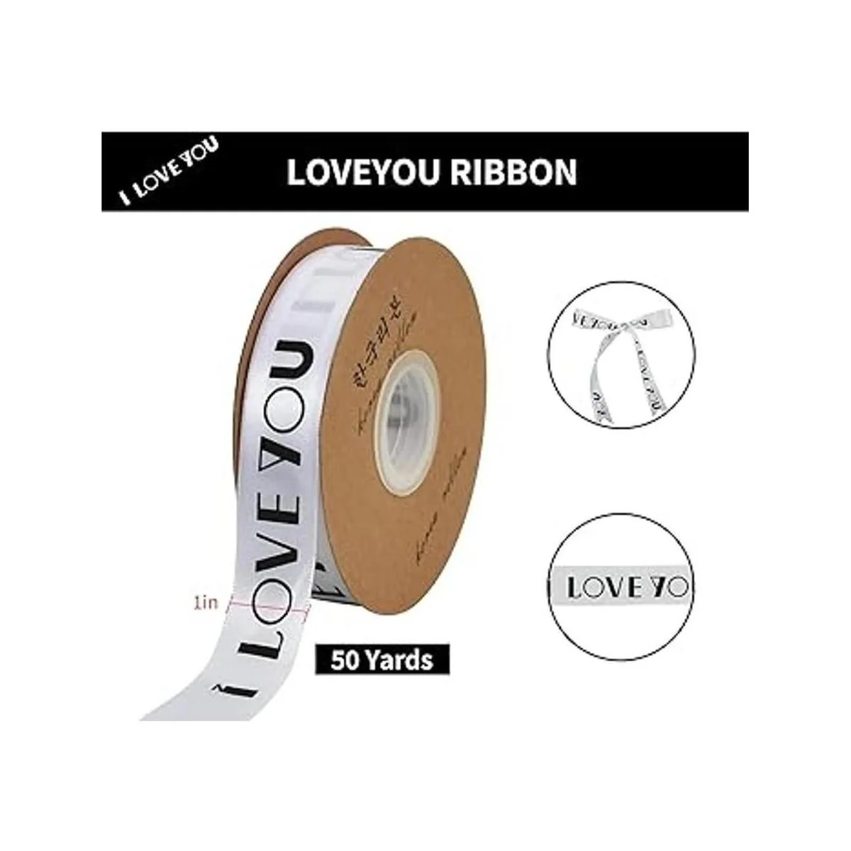 TONIFUL 1 pulgada x 50 yardas de cinta de satén con estampado blanco I Love You para el día de San Valentín, envoltura de regalos, boda, cumpleaños, vacaciones, fiesta, decoración de pastel floral, manualidades, fabricación de lazos