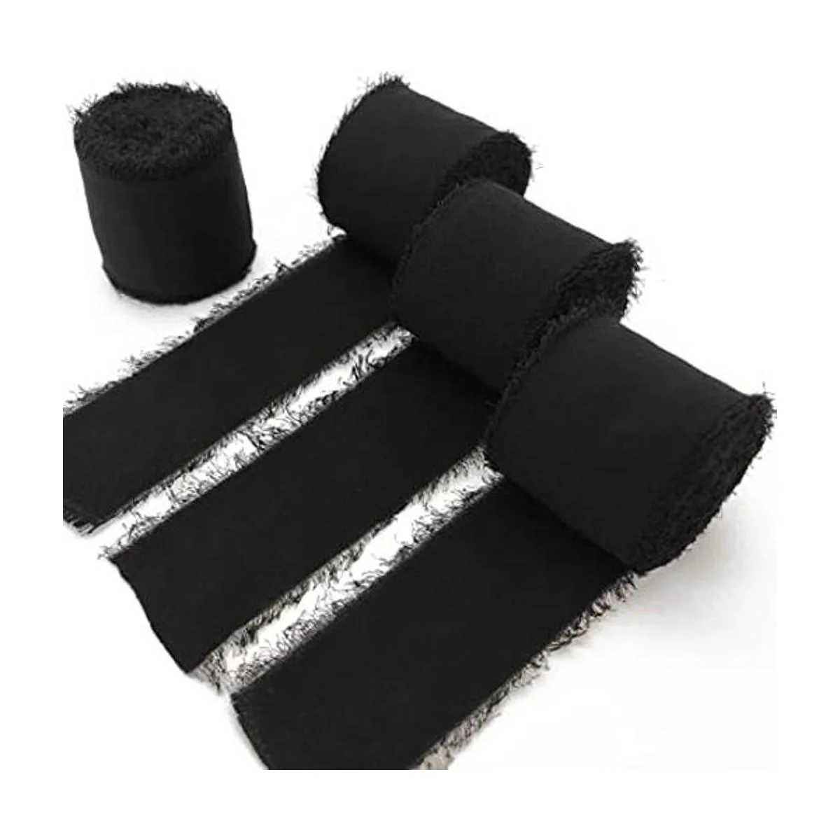 TONIFUL 4 rollos de cinta de seda de gasa negra de 112 pulgadas, 22 yardas, juego de cintas de gasa hechas a mano para invitaciones de boda, ramos de novia, envoltura de regalos, manualidades de bricolaje negro, 22 yardas, 1.5 pulgadas