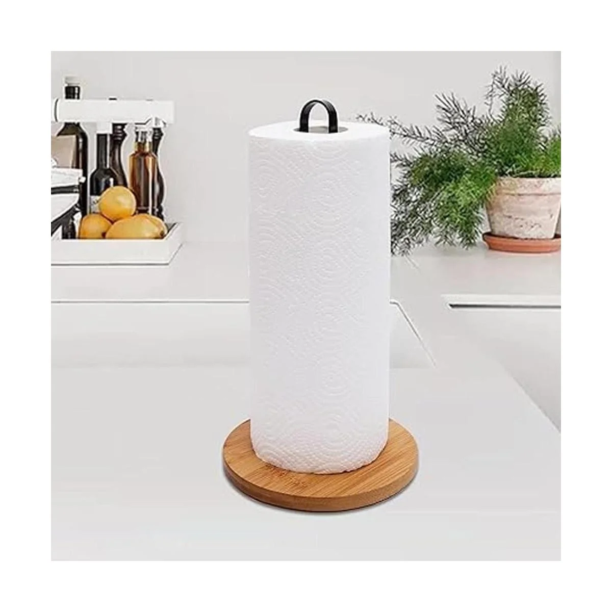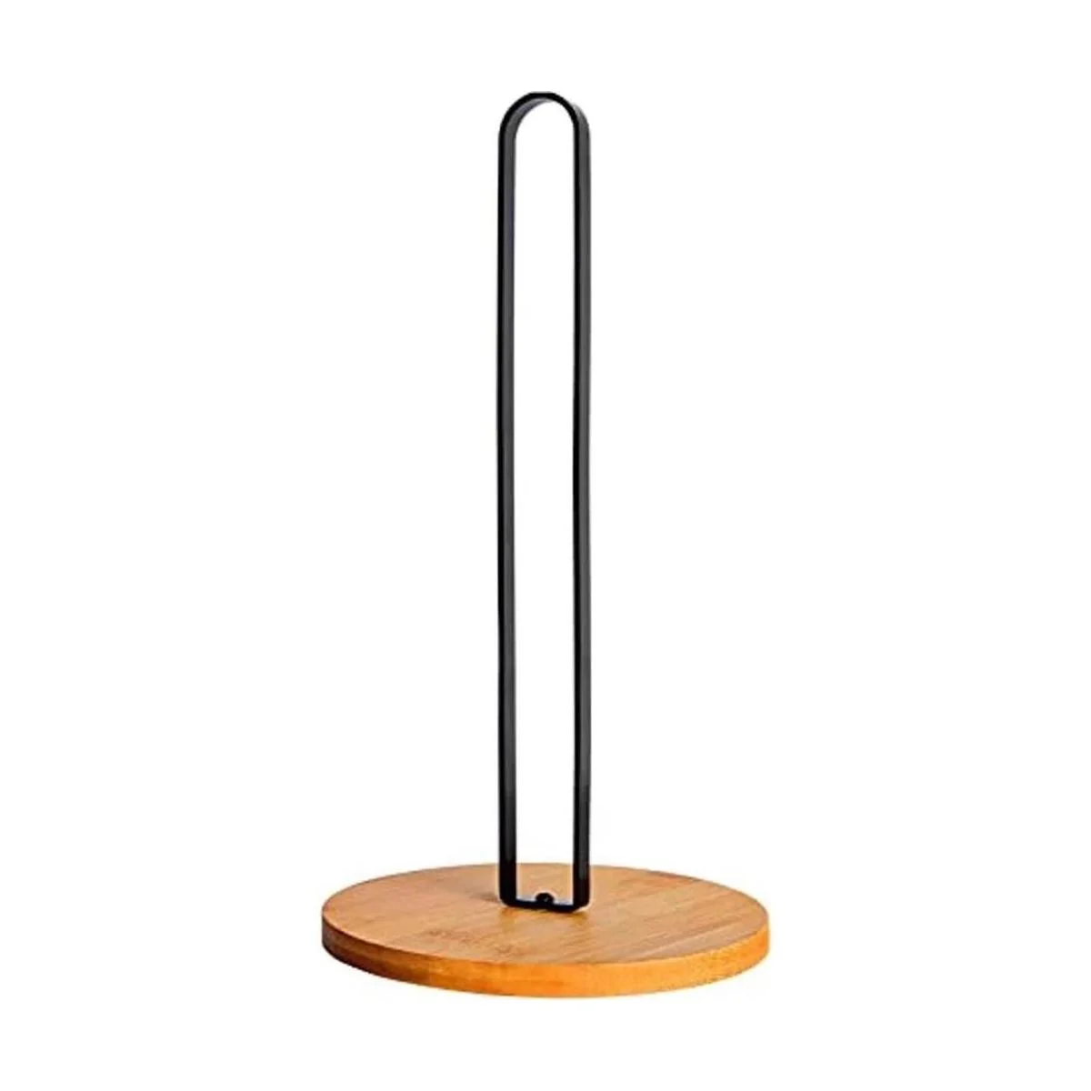 TONLEA Soporte para toallas de papel de madera, soporte para toallas de papel negro, soporte para toallas de cocina independiente con base de madera antideslizante