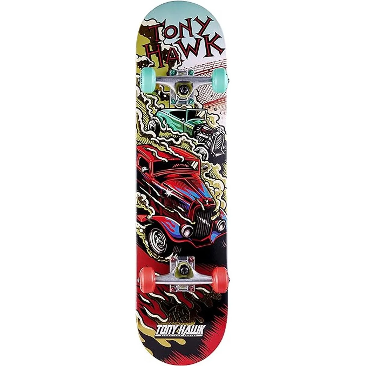 Tony Hawk Signature Series: la patineta es adecuada para todos los niveles de habilidad y parte de la serie Tony Hawk Signature Skateboard. La patineta proporciona el ajuste perfecto para cruceros, tallados, estilo libre, descenso y más mientras se mantiene elegante, los gráficos metálicos súper geniales; está diseñada con camiones de aleación de aluminio para ofrecer más control y estabilidad al montar