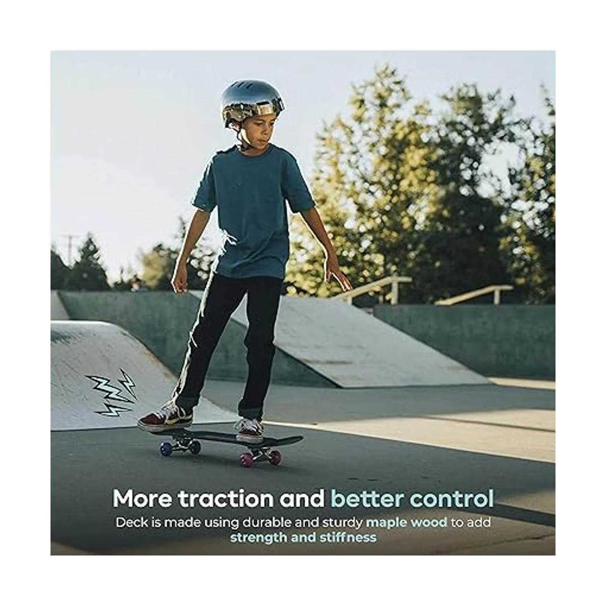 Construcción robusta y estable: la cubierta completa del monopatín está fabricada con madera de arce duradera y resistente para añadir resistencia y rigidez mientras que también le da un toque elegante; ofrece más tracción para tus pies y proporciona un mejor control al patinar
