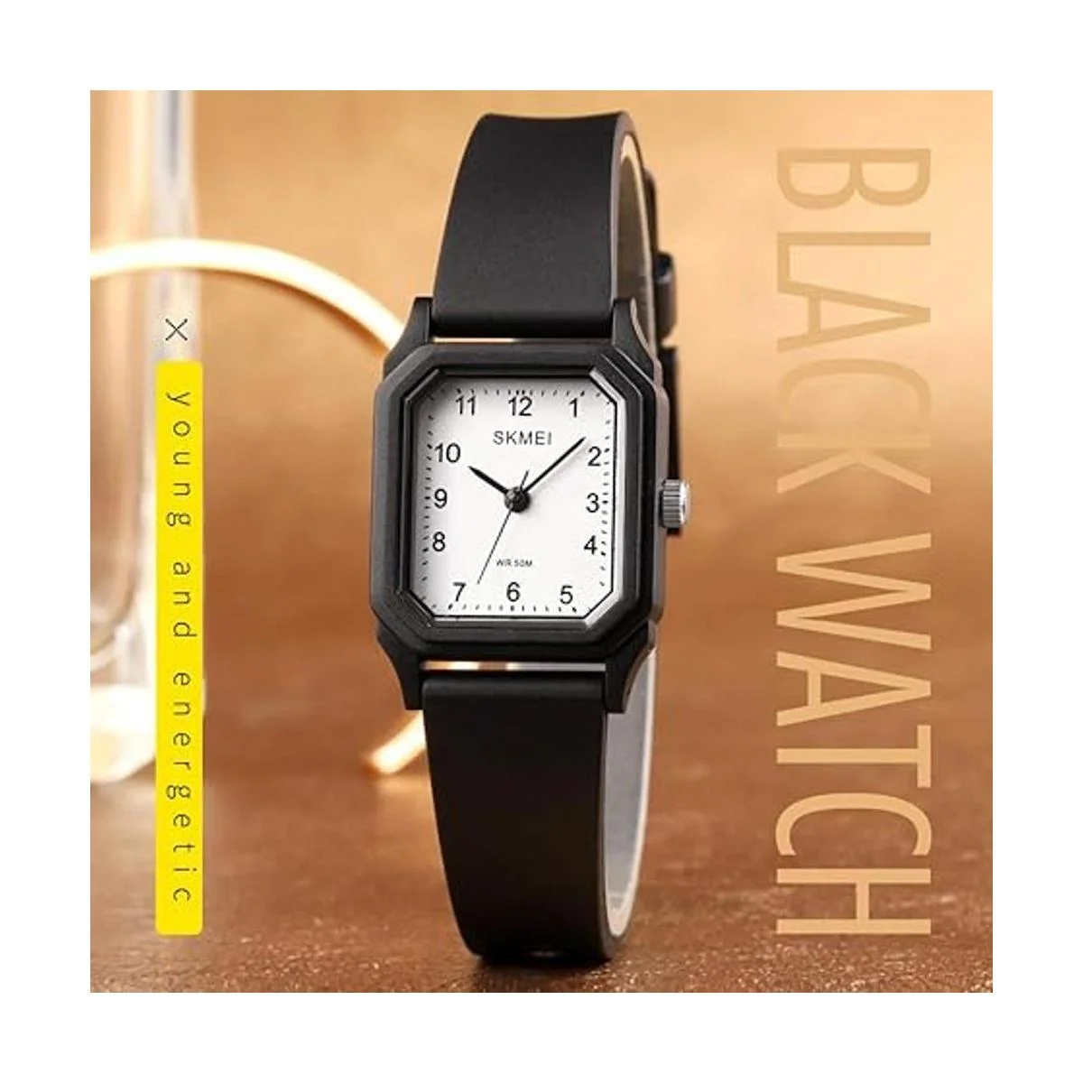 Elegante reloj analógico de cuarzo con esfera cuadrada: clásico, moderno, estilo minimalista. Diseño preciso de tres puntadas con números arábigos clásicos. Ideal para mujeres, niñas, viajeras de ocio y uso diario.