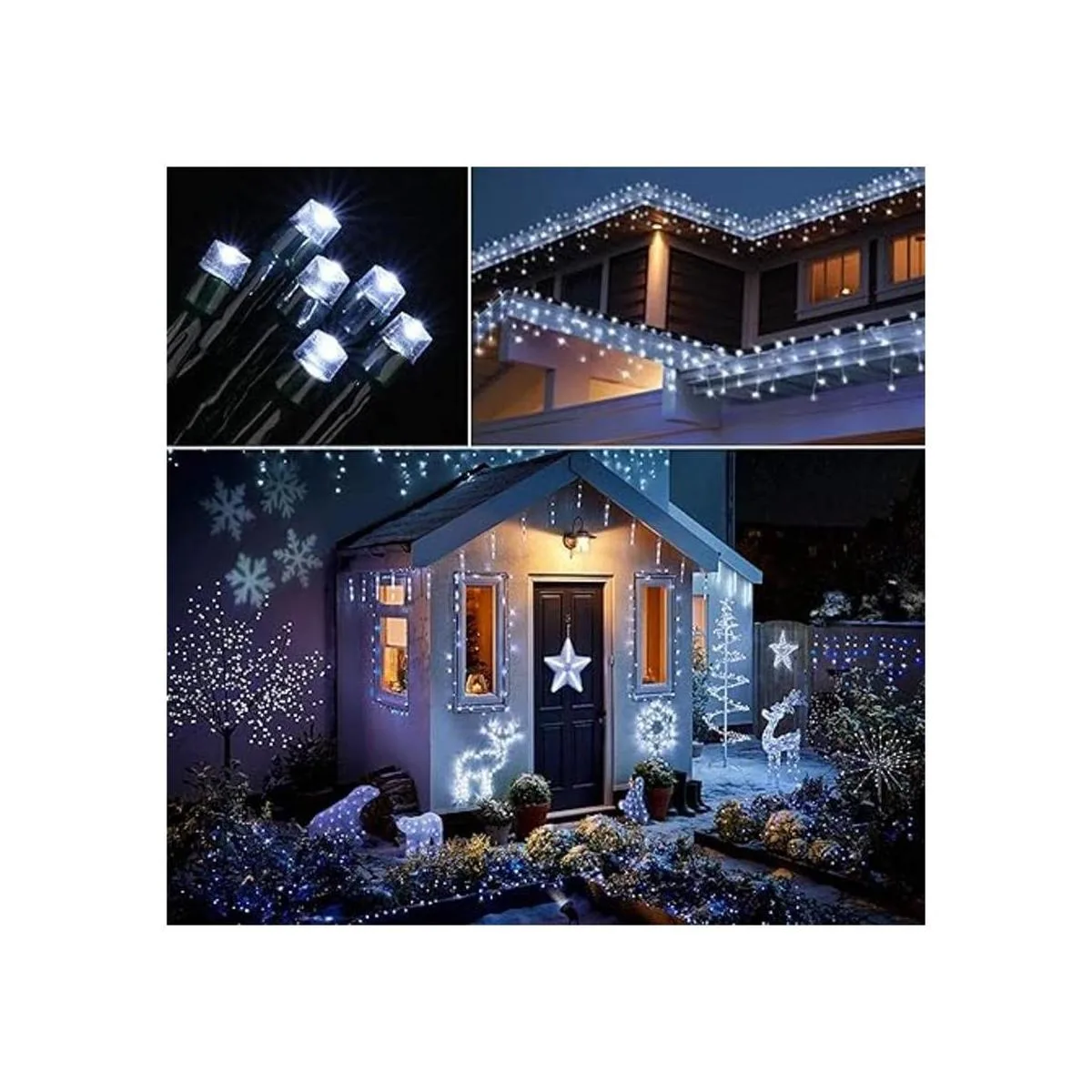 2 interruptores y 8 modos diferentes: Esta tira de luces de Navidad para el exterior tiene un botón de encendido/apagado y un botón para cambiar el modo, pulsa el botón de modo para seleccionar 8 modos diferentes para satisfacer tus diversas necesidades.