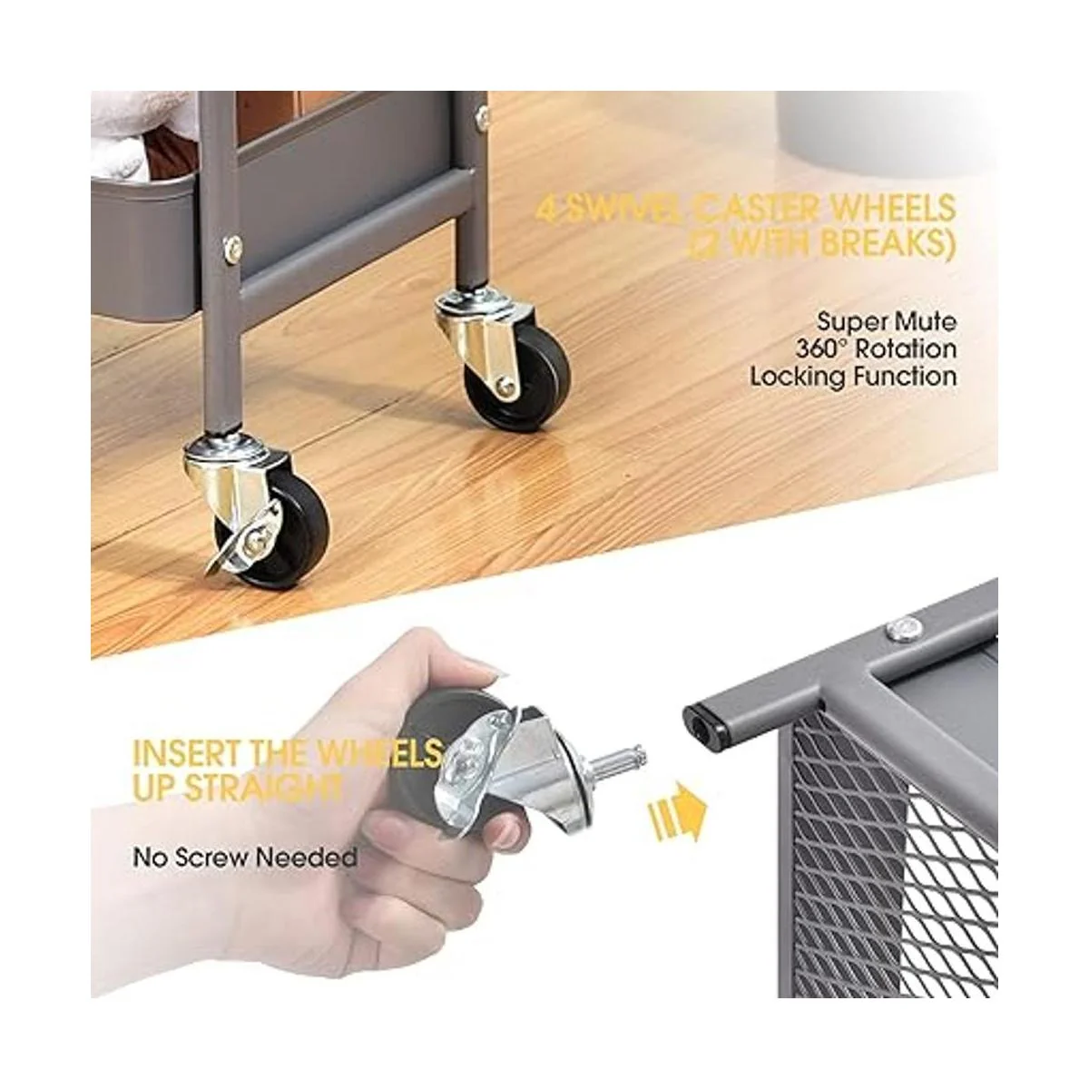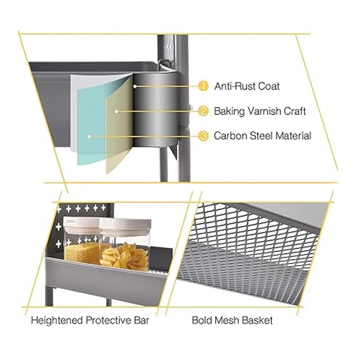 Explora la utilidad para la aplicación: diseñado para crear espacio de almacenamiento adicional, este carrito de almacenamiento funcional es amigable para ahorrar espacio y fácil transporte. No solo para despensa, cocina, sala de estar, dormitorio, lavandería. Pero también perfecto para proveedores de oficina, electrodomésticos de aula y proveedores hosipitales. Los tableros laterales son eficaces para colgar las cosas que quieres organizar.
