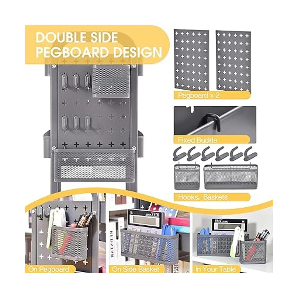 Explora el tablero de clavijas para el almacenamiento: en comparación con el carrito ordinario, nuestro carrito mejorado consta de tablero de clavijas de acero perforado en ambos lados que puede hacerlo tú mismo de acuerdo a tus preferencias y necesidades Además se incluyen 2 contenedores, 6 ganchos, creando más posibilidades en abundante espacio para un almacenamiento variado.