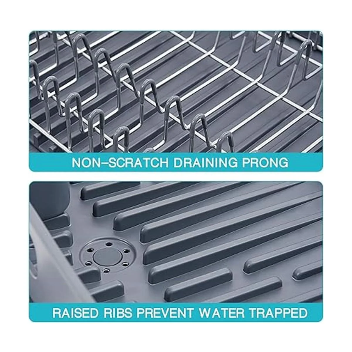 Antiarañazos y antideslizante: el estante para platos está cubierto con la cubierta protectora, evita que tus artículos se rayen, caigan y reduce la apariencia de ruido. Las patas de goma antideslizantes mantienen la estabilidad de todo el estante y no rayan la encimera.