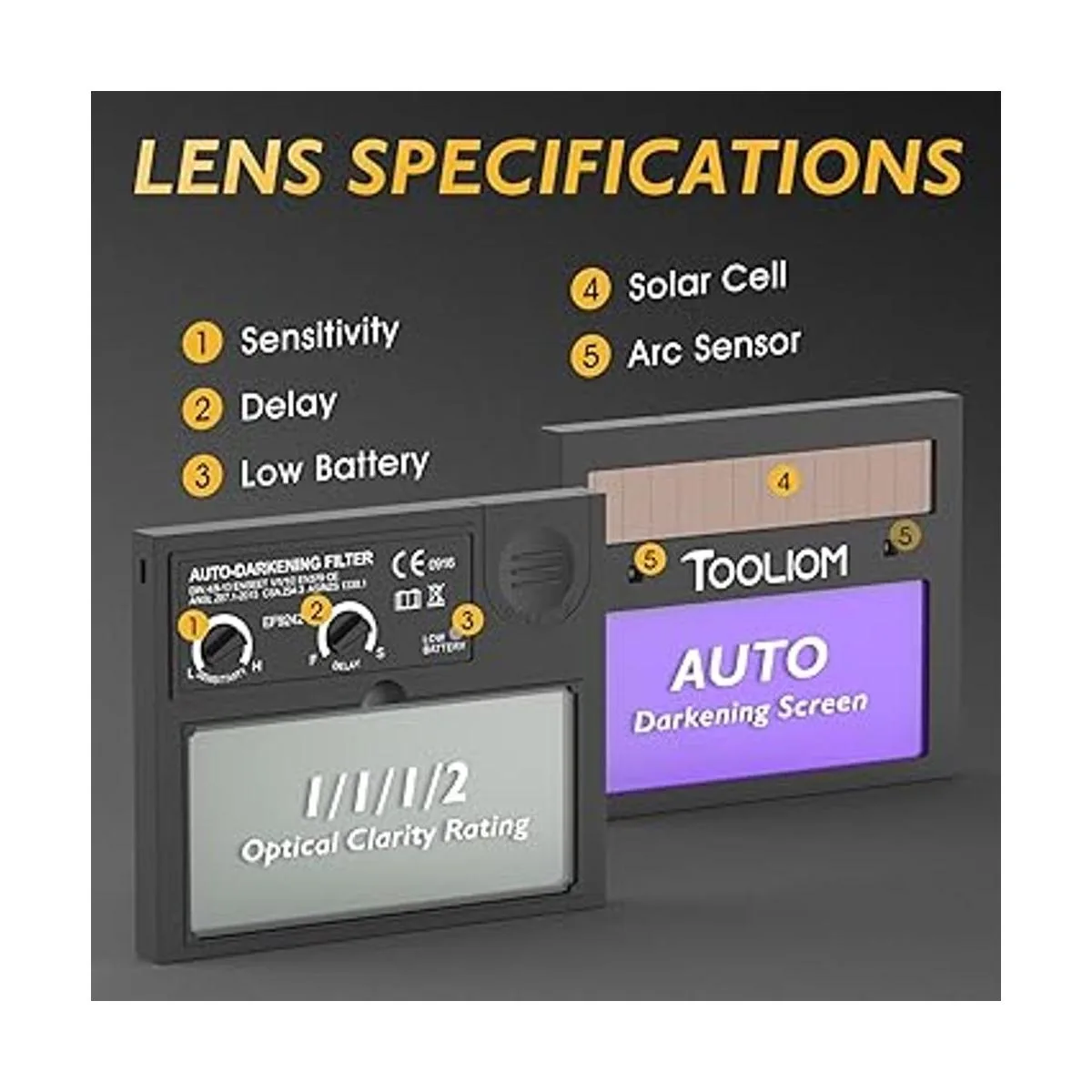Ajuste: ajuste de tono oscuro variable de 9 a 13, el tiempo de estado oscuro a brillante dentro de 0,1 s a 1,0 s.