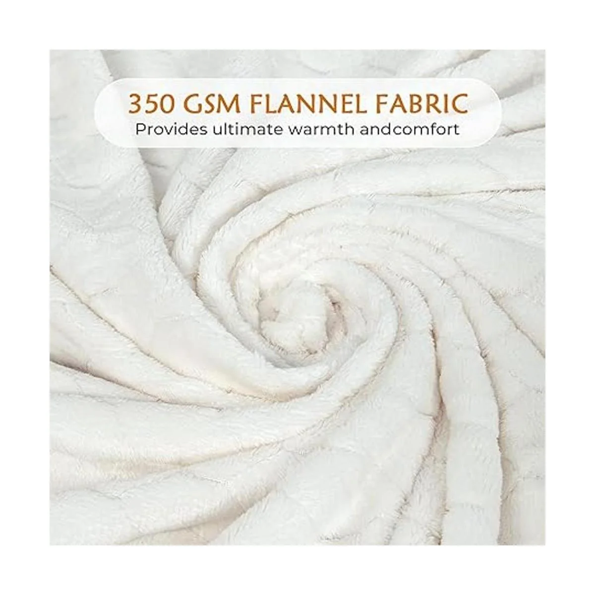 TOONOW Manta de forro polar, manta de felpa mullida de 50 x 60 pulgadas, manta de cama súper suave y esponjosa, con patrón geométrico, cómoda manta de franela de microfibra para sofá, cama, sofá, color blanco crema