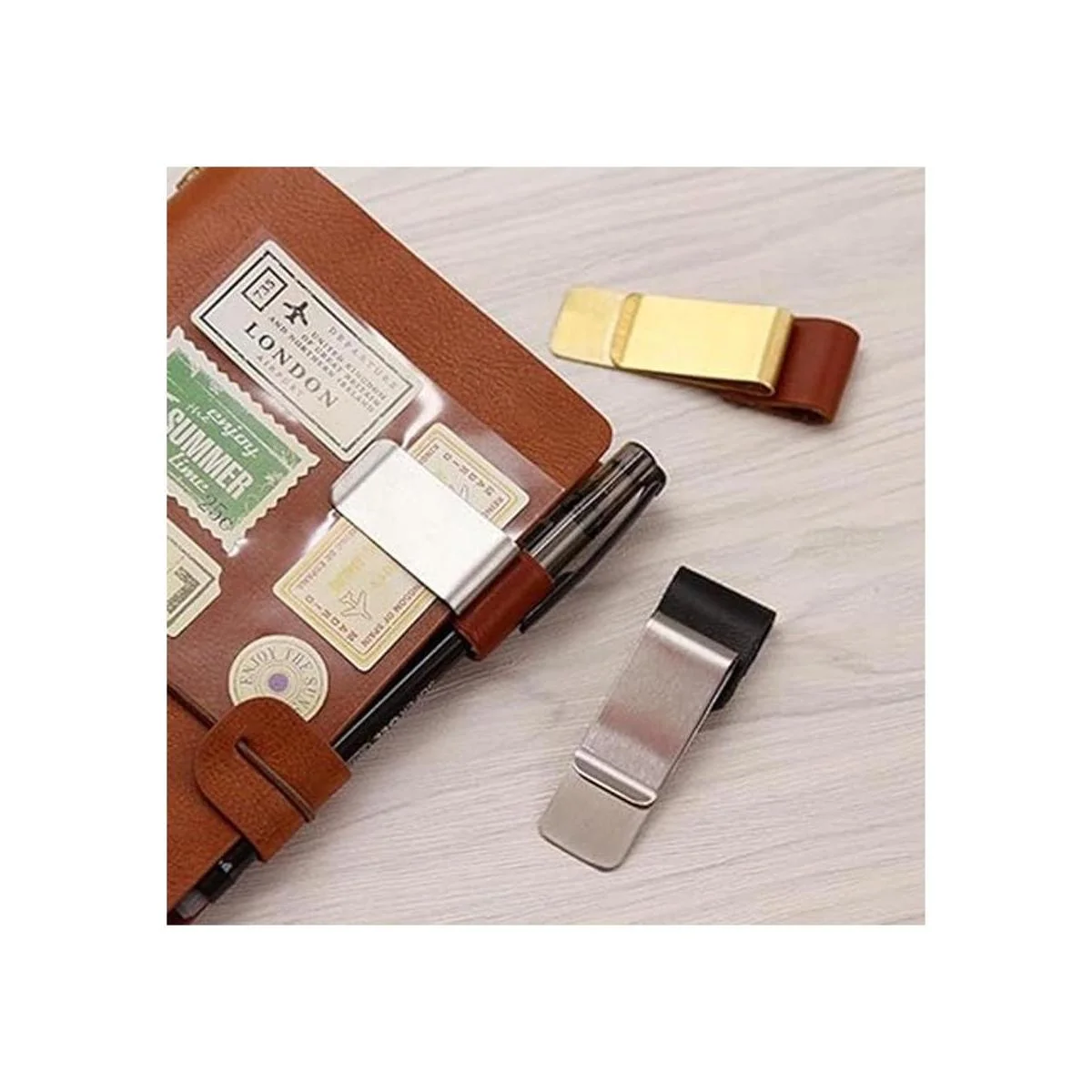 Toosunny Juego de 4 bolígrafos de piel sintética con clip de acero inoxidable