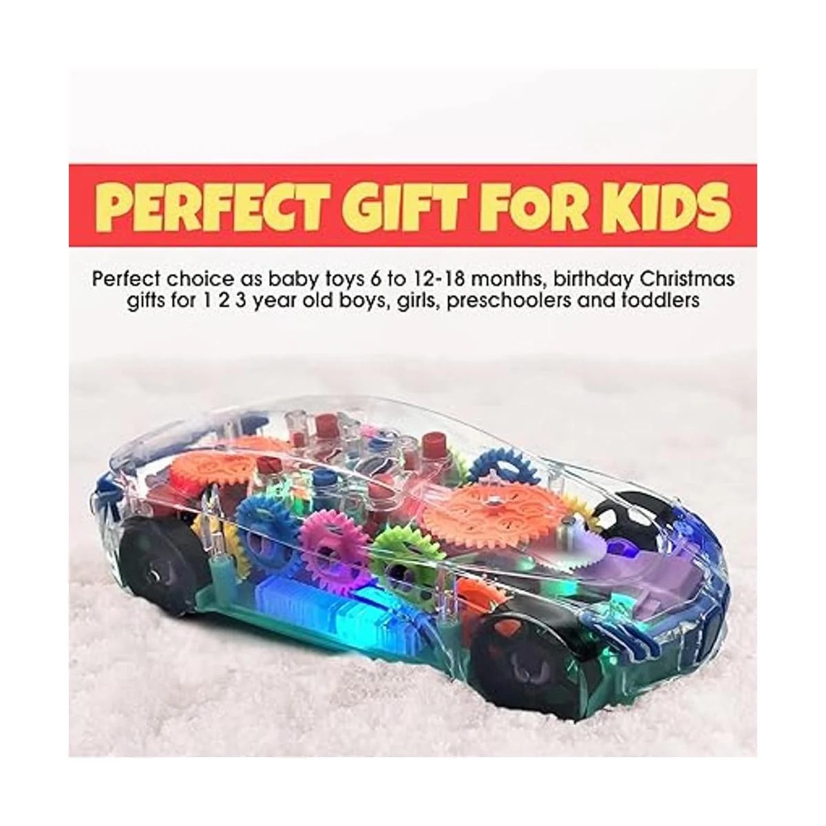 TOOTY Coche con luz transparente Juguetes de coche para niños y niñas Música, luces y colores Construcción ABS duradera Rueda universal para giro de 360 grados Ideal para cumpleaños, Navidad