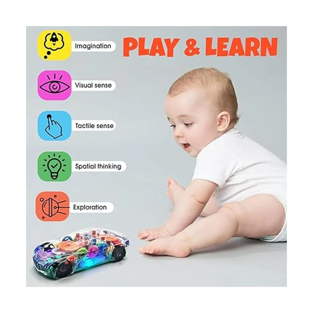 Luces y sonidos multicolores: estos coches para niños pequeños fueron diseñados teniendo en cuenta una experiencia colorida y vibrante para niños y niñas, con un diseño transparente que les permite ver todos los maravillosos colores, además de sonidos únicos que capturarán su atención e imaginación