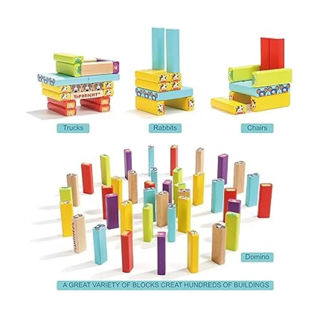 TOP BRIGHT Bloques de madera de colores para apilar, para niños de 4 a 8 años, 51 piezas