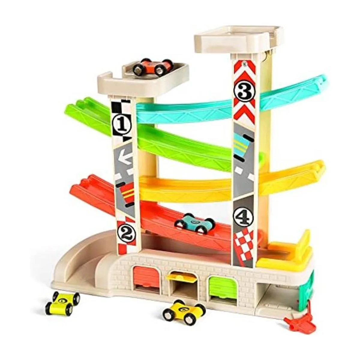 El mejor regalo para niños de 2 años: juguete de rampa de coche de pista de carreras brillante para niños y niñas de 2 a 3 años. Los pequeños corredores ponen los mini coches en la rampa de lanzamiento y soltarse. Están fascinados viendo los coches cruzados por las rampas Promueve la coordinación ojomano de los niños pequeños mientras se divierten con estos juguetes de rampa de coche.