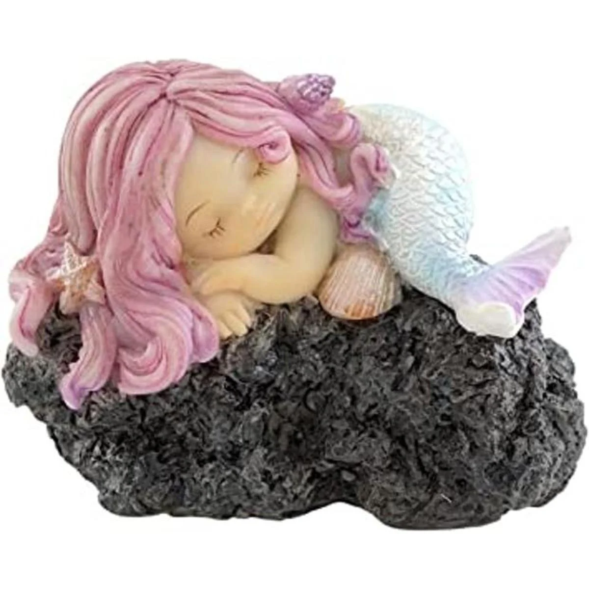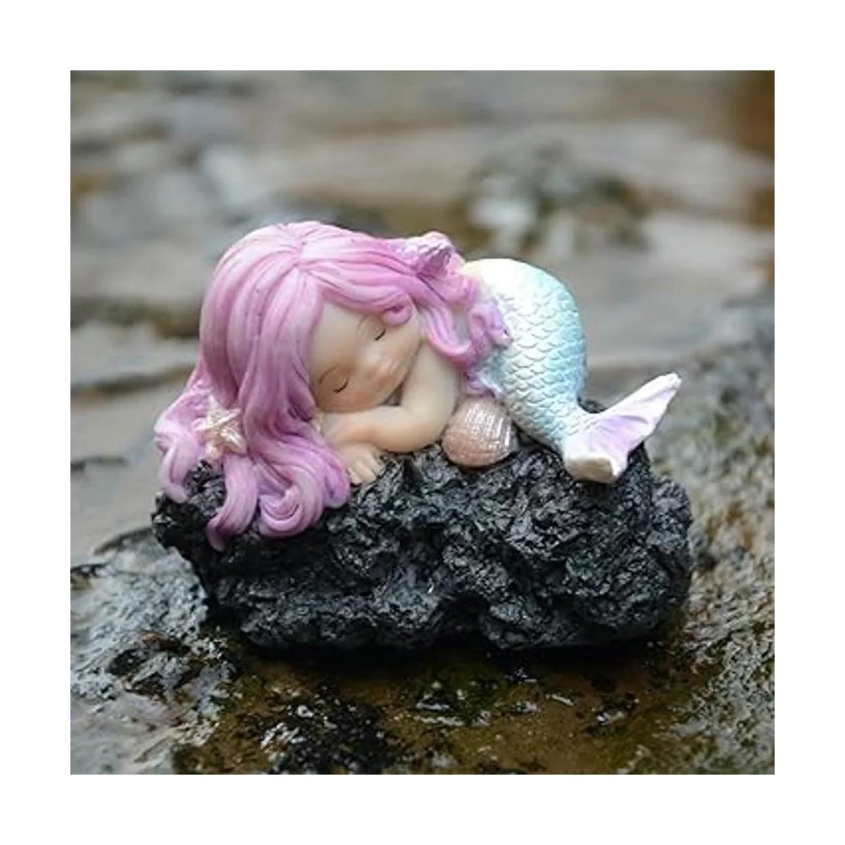 Top Collection Jardín de hadas en miniatura y terrario durmiendo sirenita sobre estatua de roca