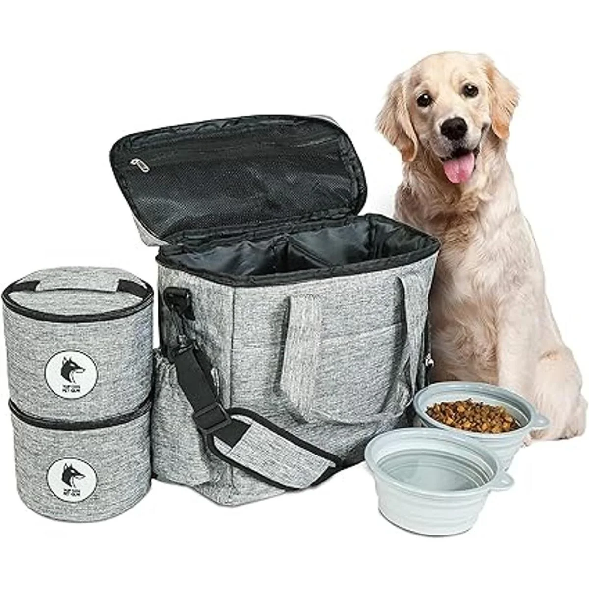 Top Dog Pet Gear Bolsa de viaje gris para suministros Incluye bolsa de viaje, cuencos de viaje para perros, almacenamiento de alimentos, bolsas de perro aprobadas por aerolíneas para viajar, accesorios de viaje para perros para campamento, playa