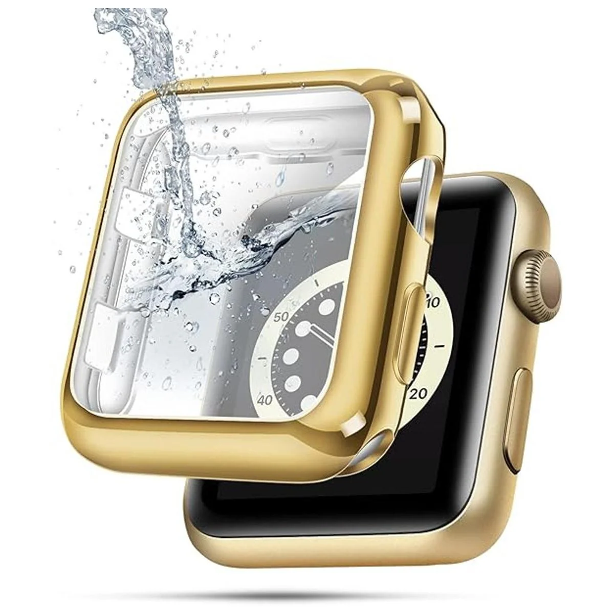 top4cus Funda ecológica de poliuretano termoplástico suave antiarañazos, ligera, de 1.77 pulgadas, protector de pantalla protector de pantalla compatible con Apple Watch Series 87 Series 6SE54 Series 321 1.57 pulgadas, dorado