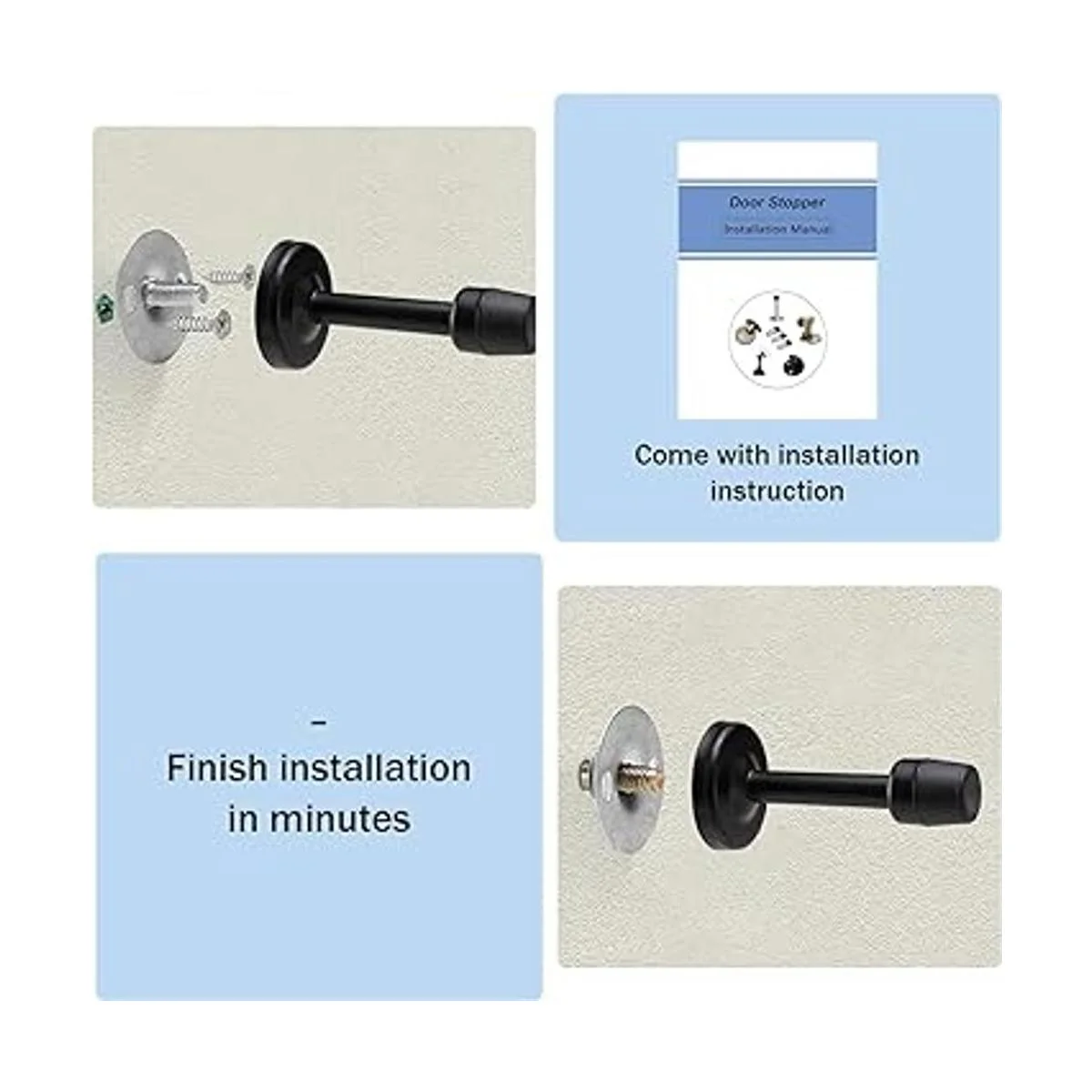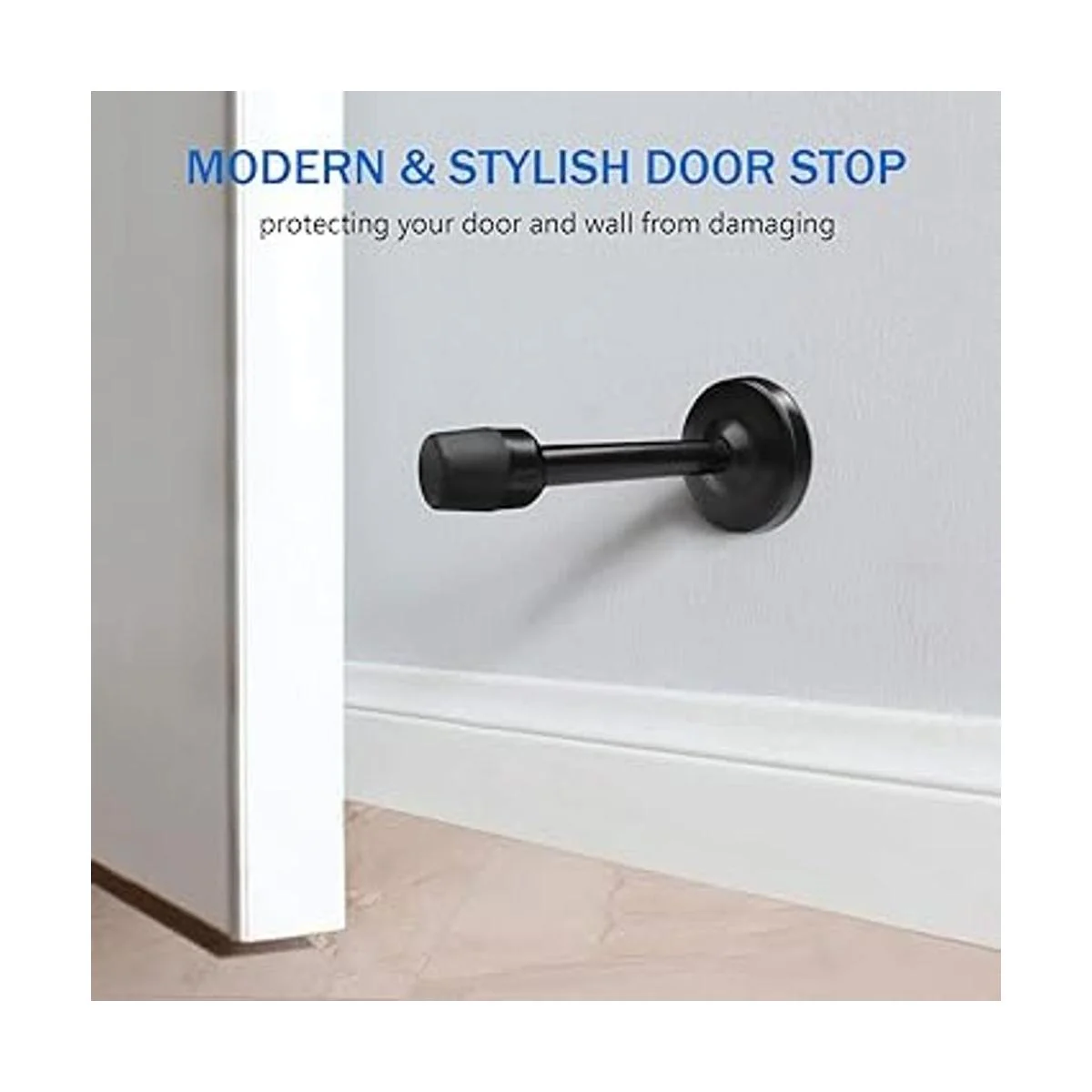 Aplicación multiescena: la longitud de los topes de puerta de 4 pulgadas puede evitar que las puertas se abran demasiado lejos y dañen las paredes cercanas. Tope de puerta largo y moderno para el hogar, dormitorio, baño, oficina, etc., como tope de puerta al aire libre. Fácil de instalar con el kit de herramientas incluyendo tornillos y anclajes