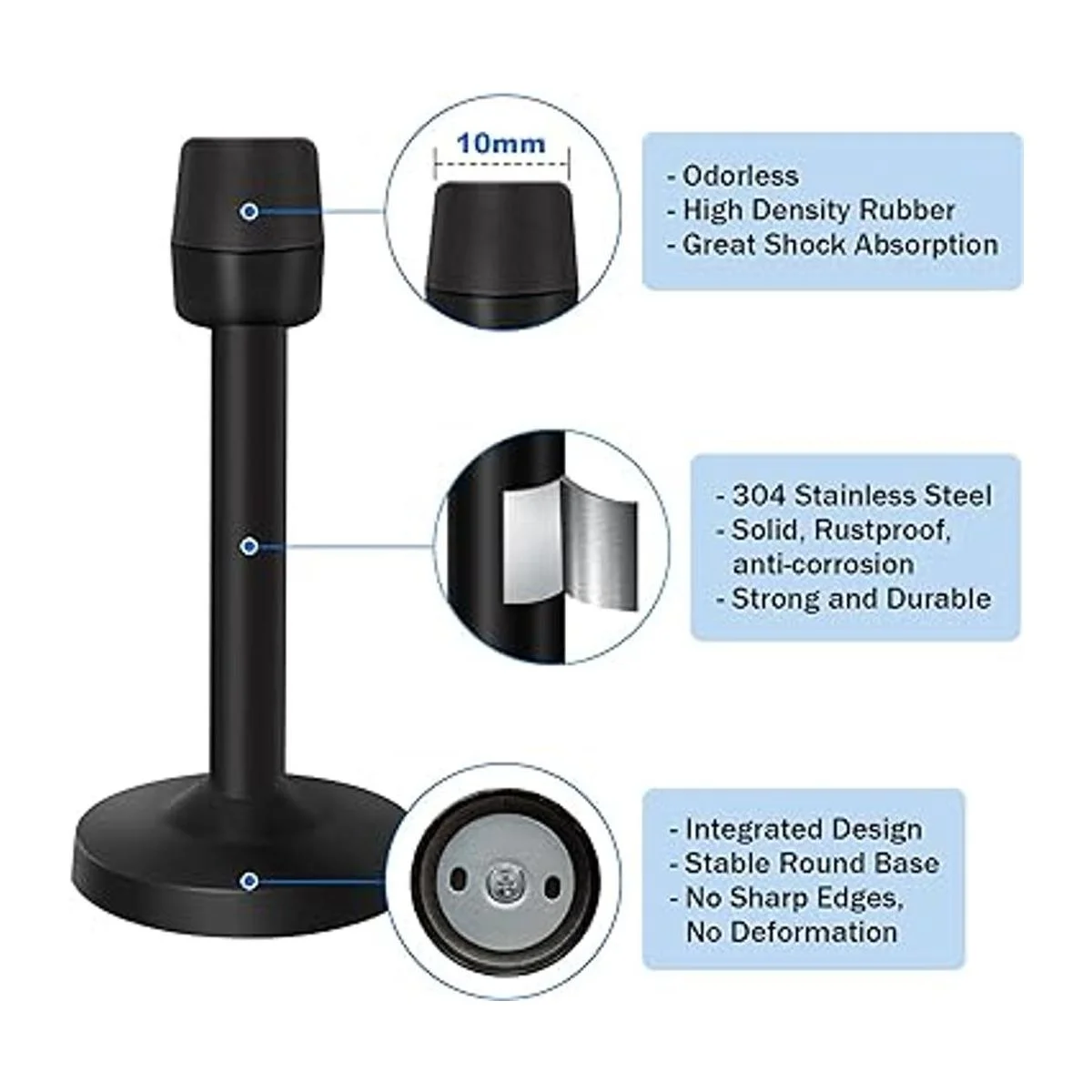 Diseño simple y elegante: el tapón de puerta negro está fabricado con acero inoxidable 304 de alta calidad que es resistente al óxido, anticorrosión, sin deformación. El tope de puerta pesado es resistente y lo suficientemente duradero como para detener la puerta. El elegante tope de puerta negro mate también añade estilo contemporáneo junto con practicidad a tu hogar.