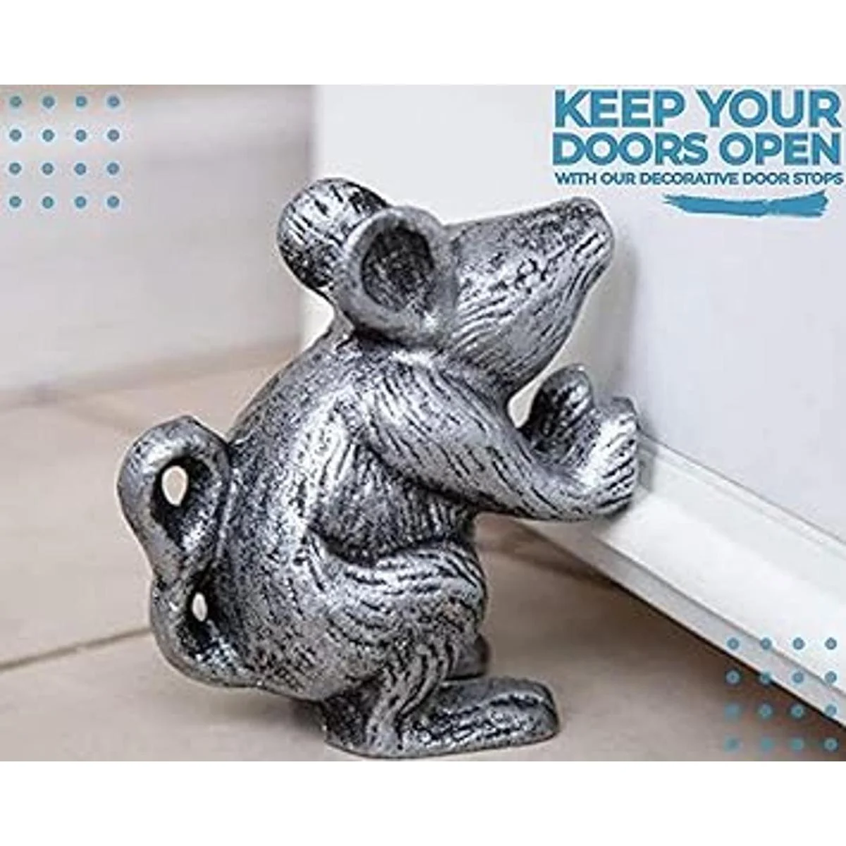 Tope decorativo para puerta de hierro fundido, diseño de ratón, único y con estilo antiguo