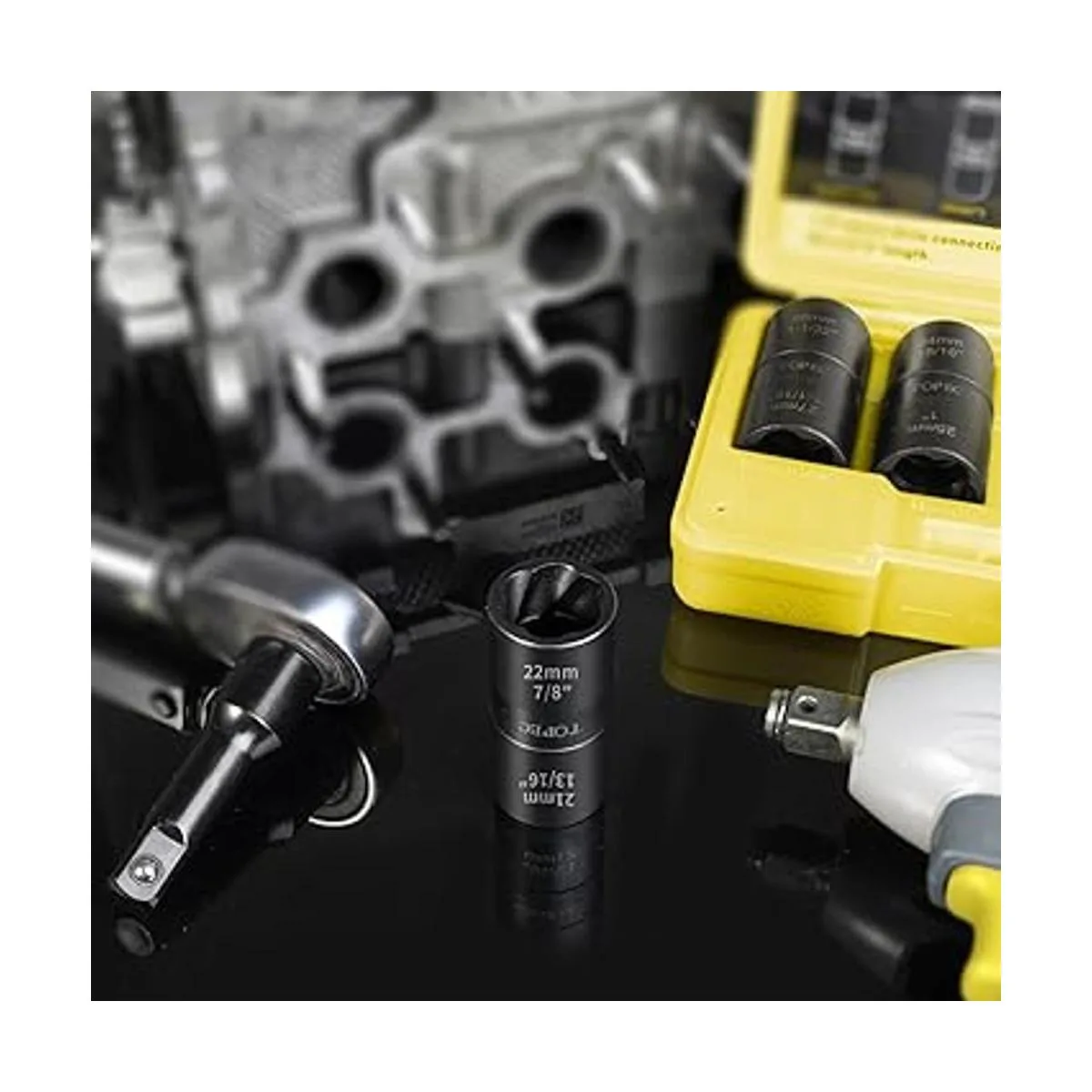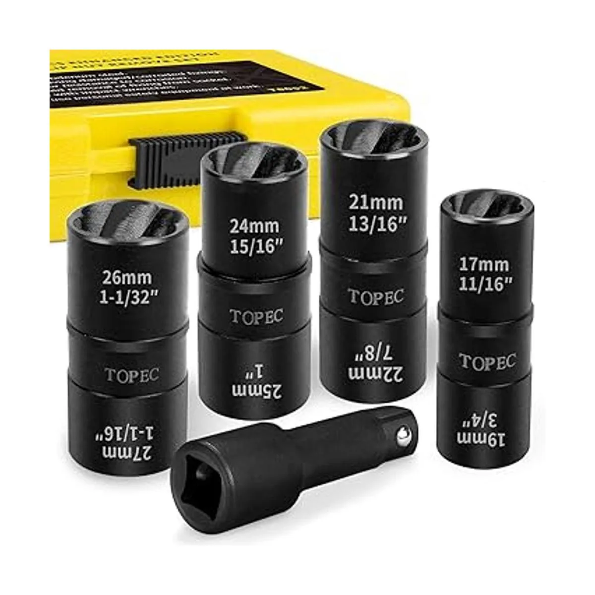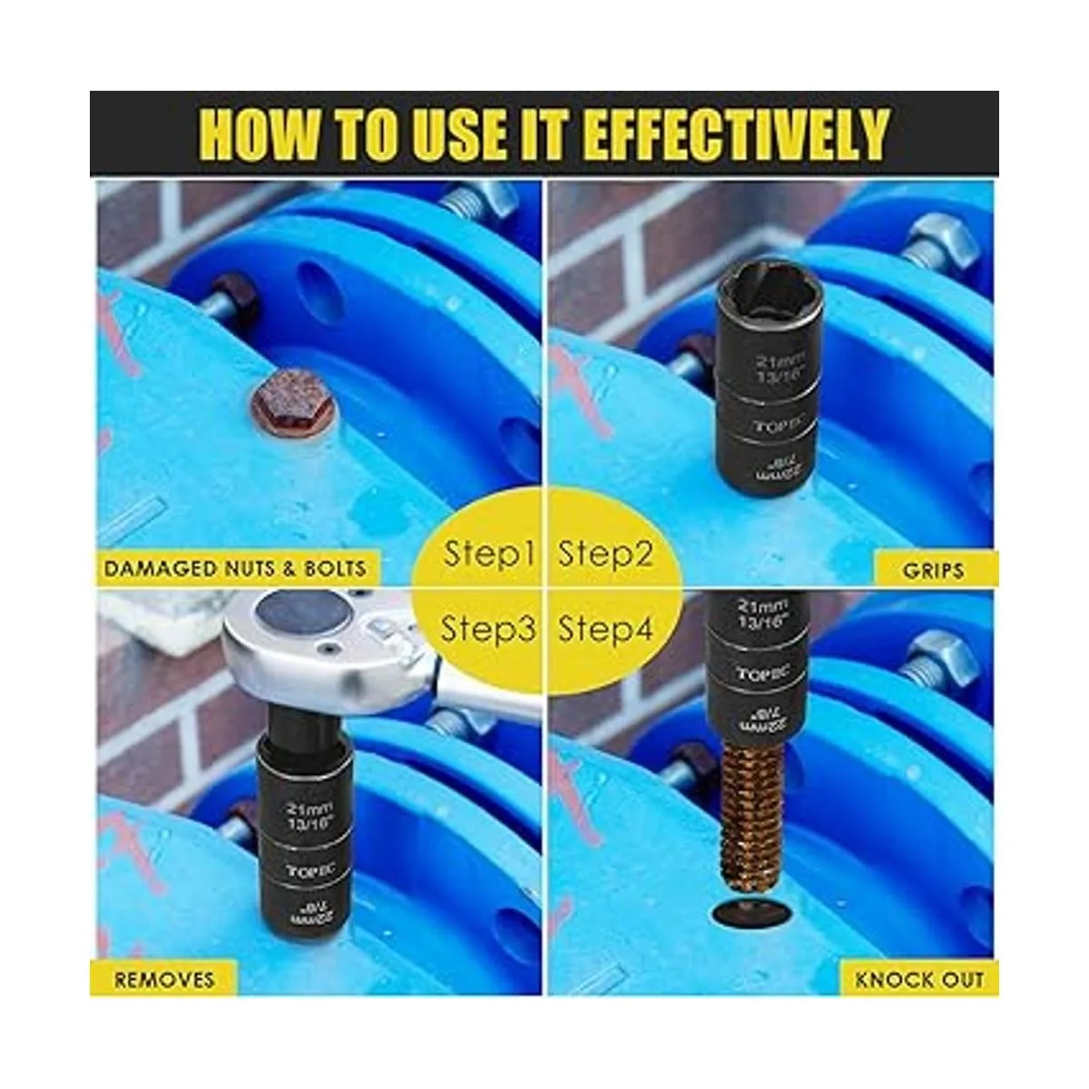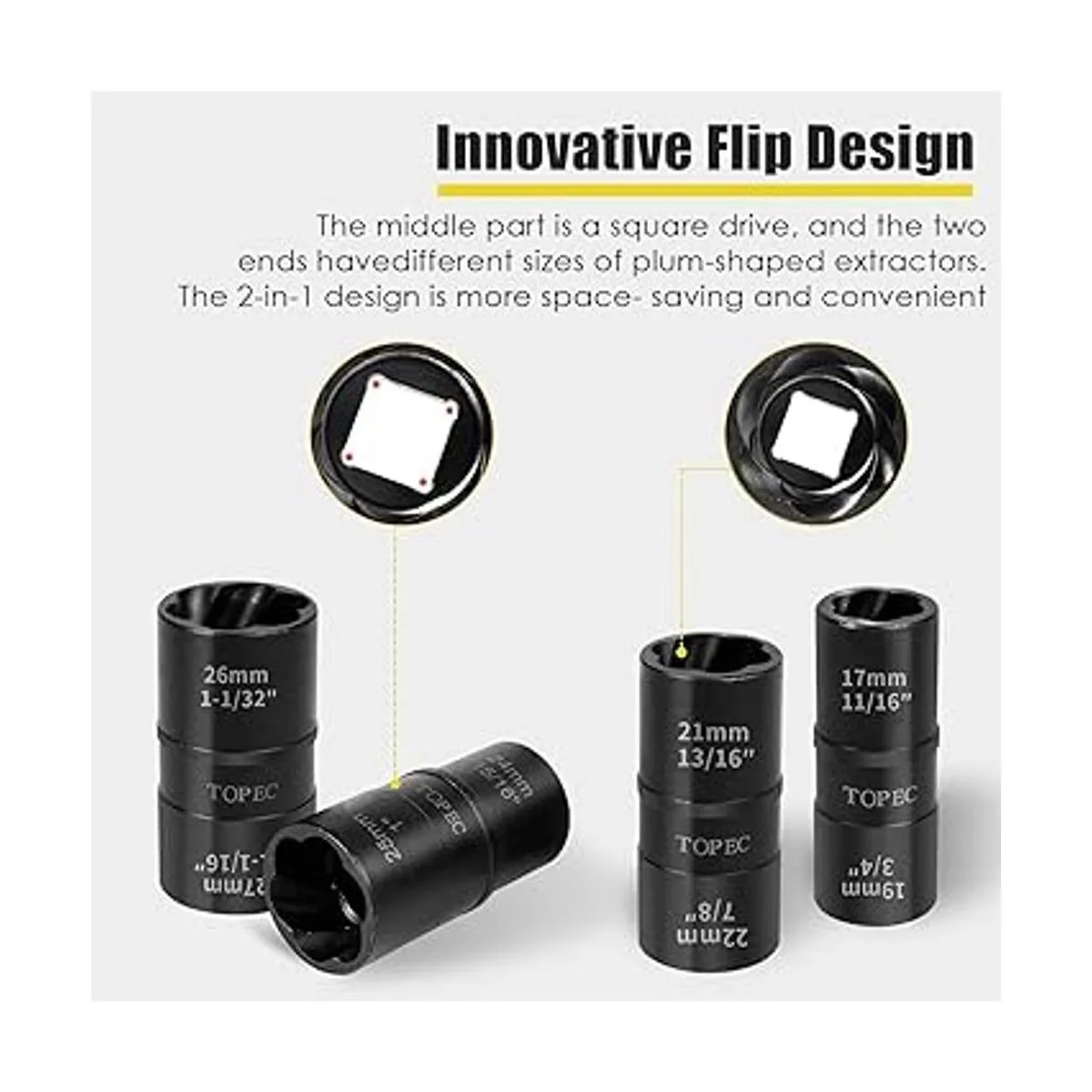 Topec 5 piezas de extracción de tuercas de edición abatible, juego de tuercas de 12 pulgada utilizado para quitar tornillos oxidados y pelados, pernos y otros sujetadores, juego de llaves de tamaño doble fácil de quitar