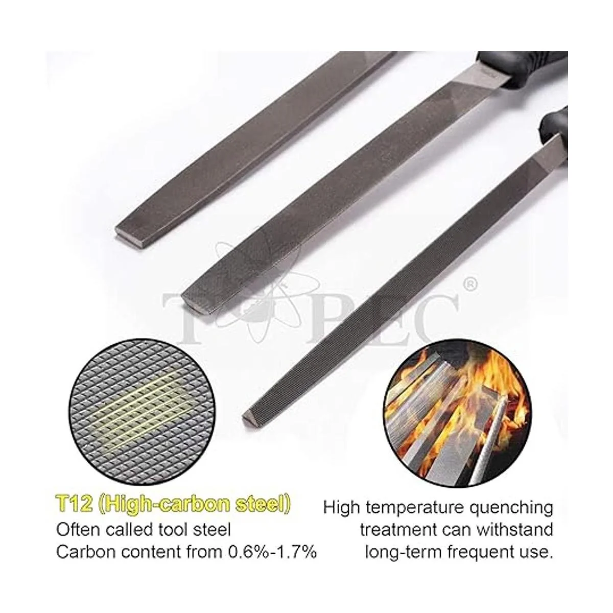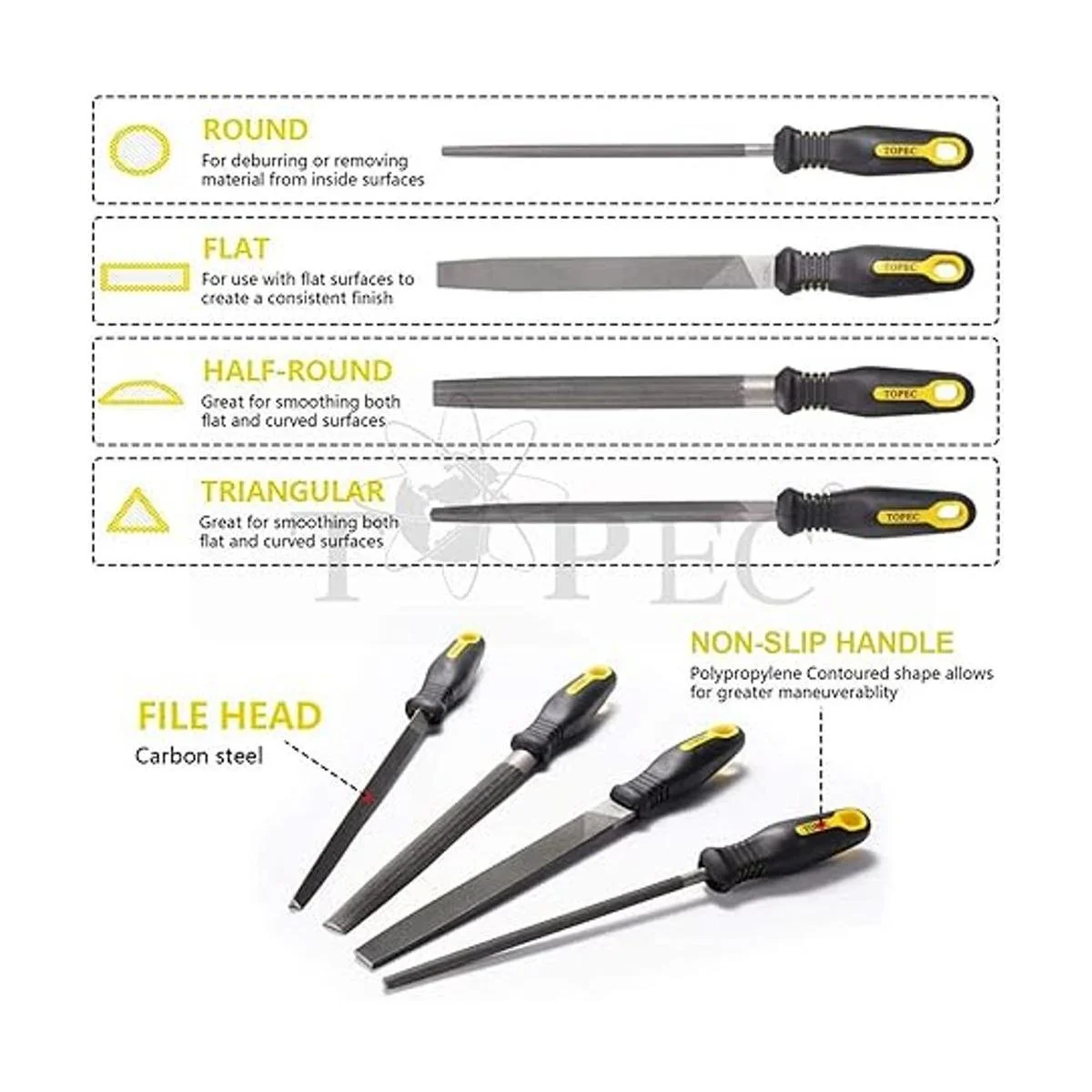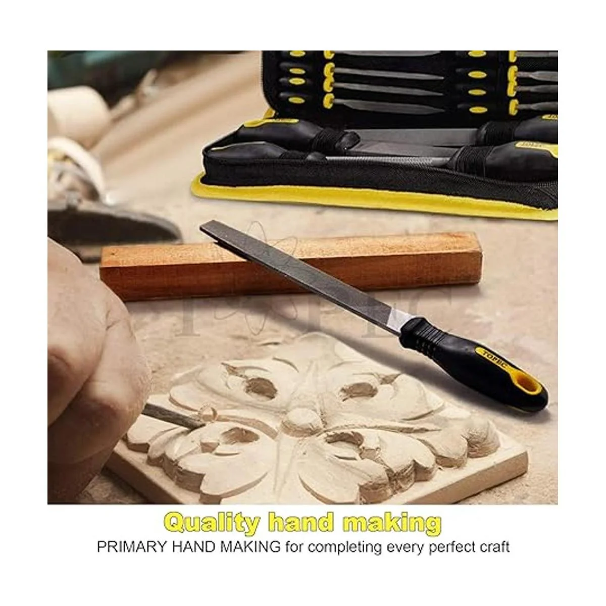 Topec Juego de 18 archivos, los kits de archivos redondos y planos están hechos de acero de alto carbono, herramienta manual de madera ideal para aplicaciones de carpintería, metal, modelo y pasatiempos