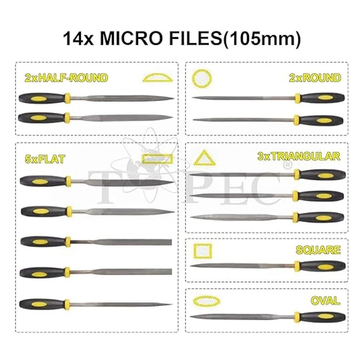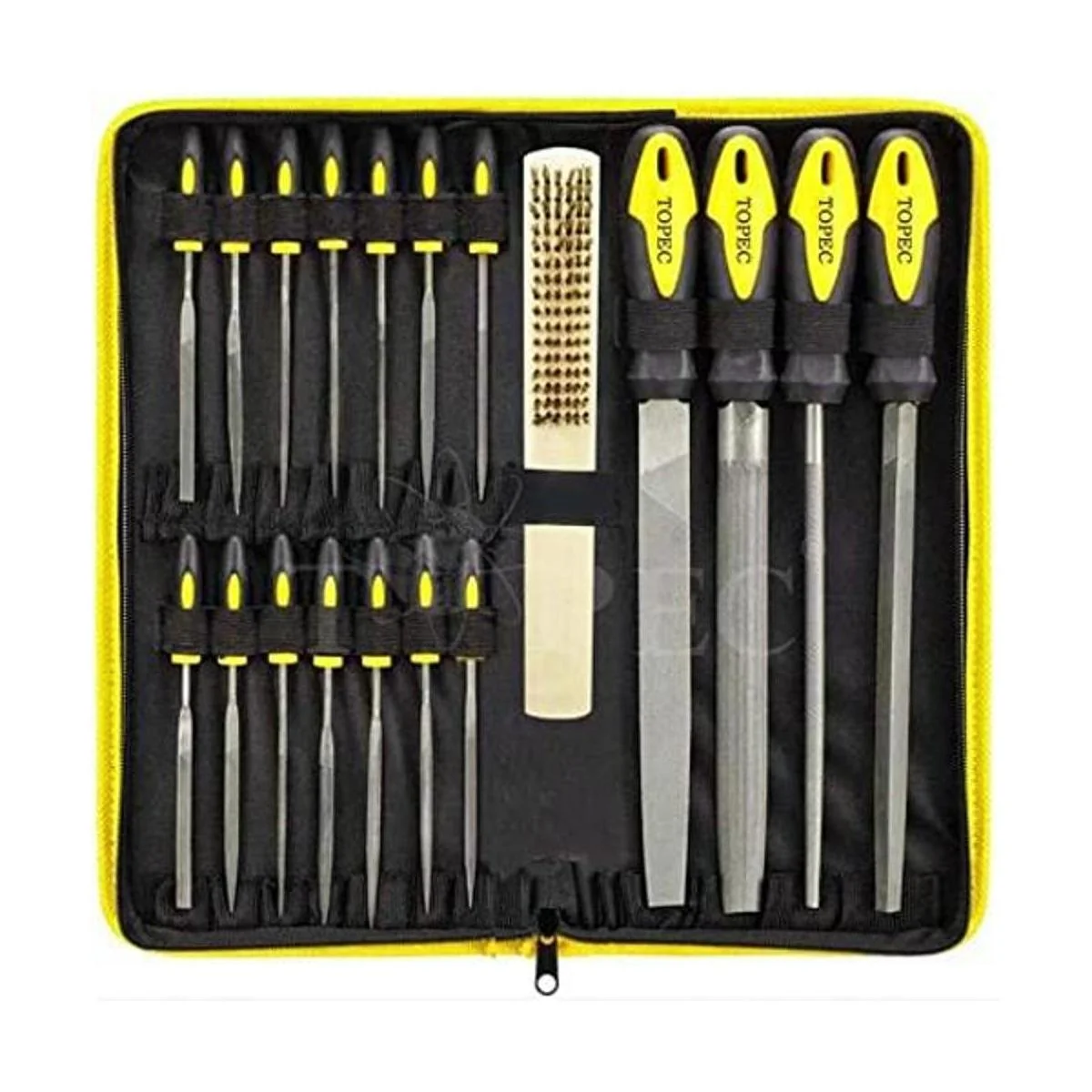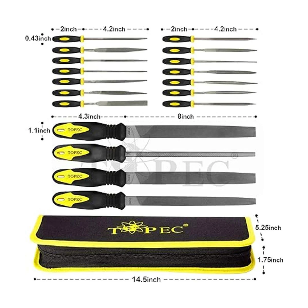 Topec Juego de 18 archivos, los kits de archivos redondos y planos están hechos de acero de alto carbono, herramienta manual de madera ideal para aplicaciones de carpintería, metal, modelo y pasatiempos