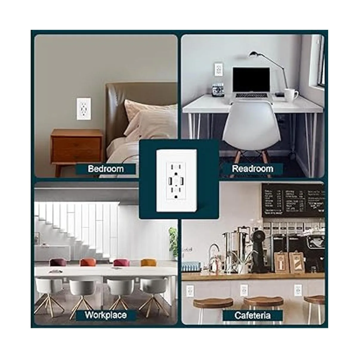 Los enchufes a prueba de manipulaciones con puerto USB vienen con placa de pared blanca sin tornillos, estilo moderno elegante y suave, es ideal para su uso en el hogar, oficina, laboratorio, biblioteca, escuela o negocios.