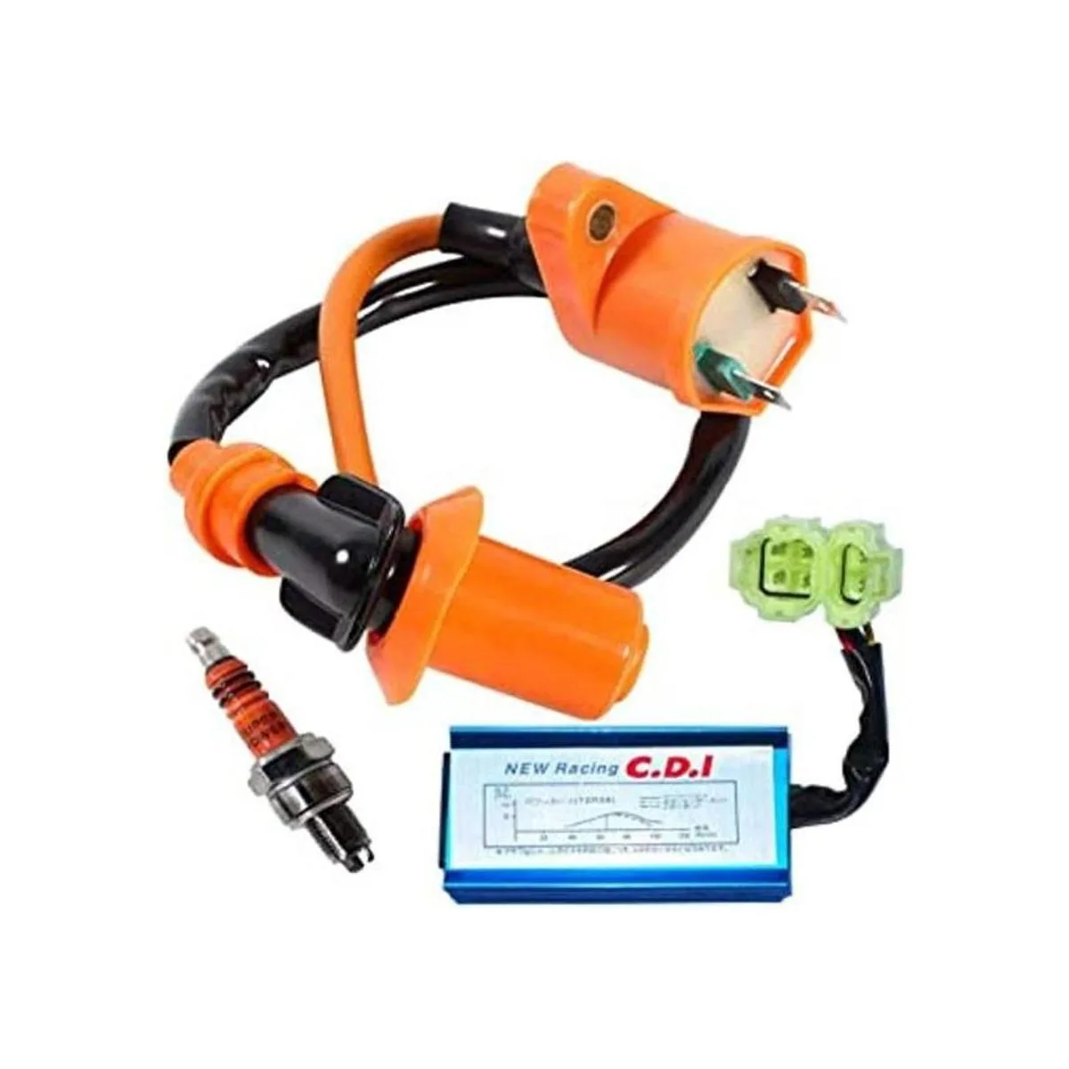 TOPEMAI Bobina de encendido de carreras de alto rendimiento para GY6 50 cc 150 cc 125 cc ATV ciclomotor con bujía de 6 pines CDI 3 electrodos Bobina de encendido de scooter, piezas de rendimiento