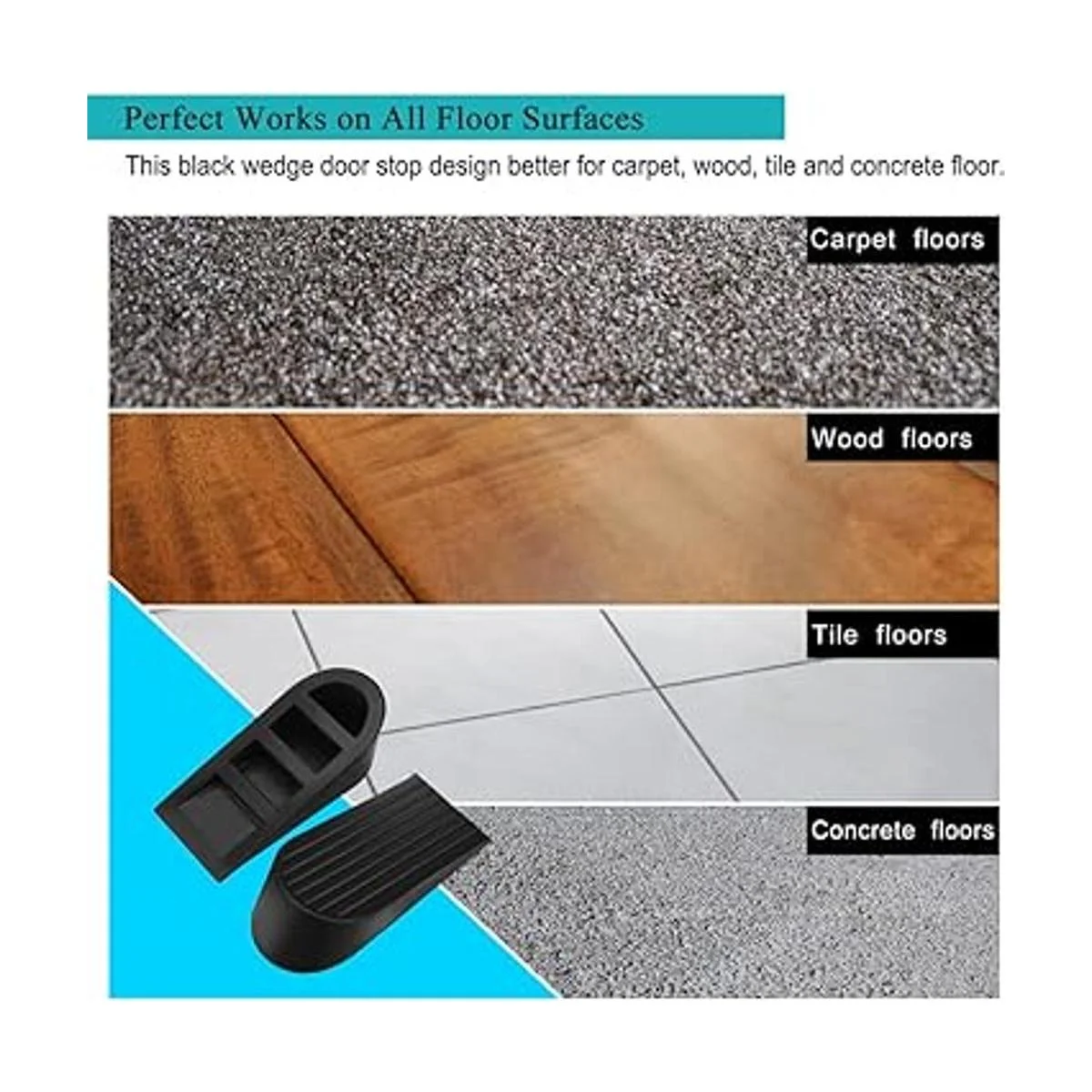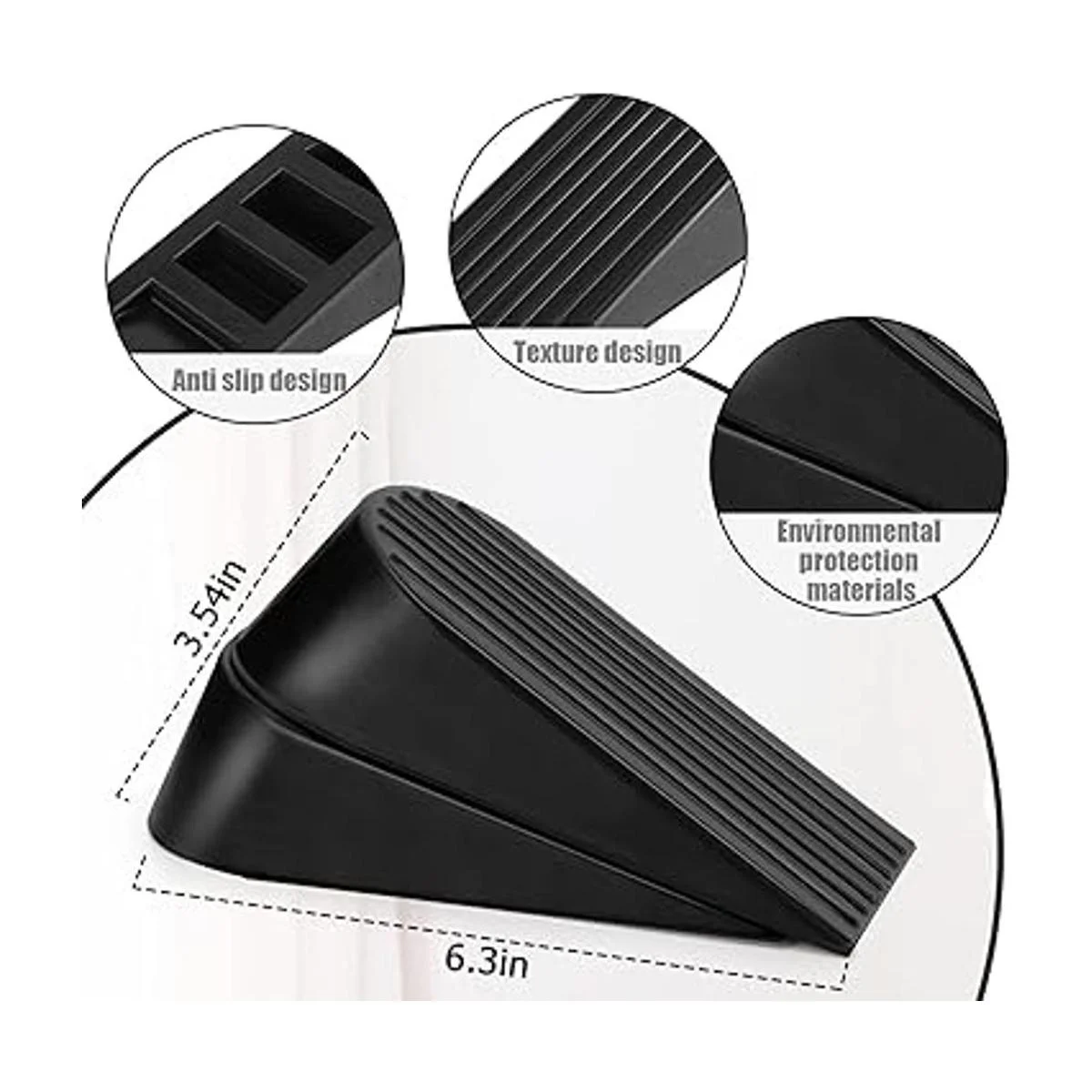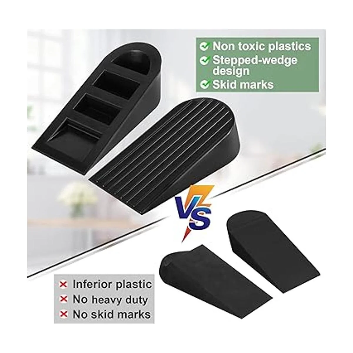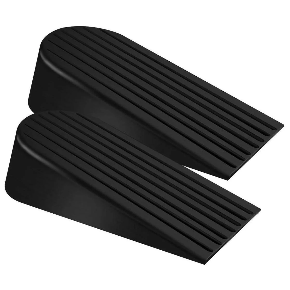 Topes de puerta grande, paquete de 2 topes de puerta de goma de cuña resistente que funciona en todas las superficies del piso, altura de hasta 1.9 pulgadas, topes de puerta que no rayan, especiales para el hogar, oficina, escuela, puerta pesada negro