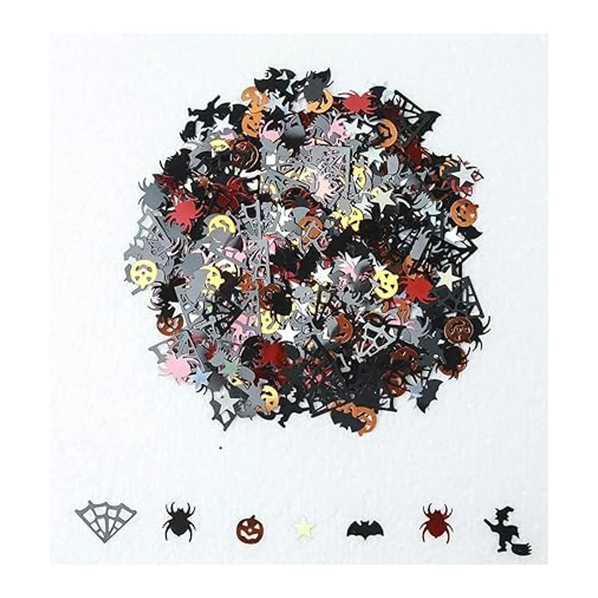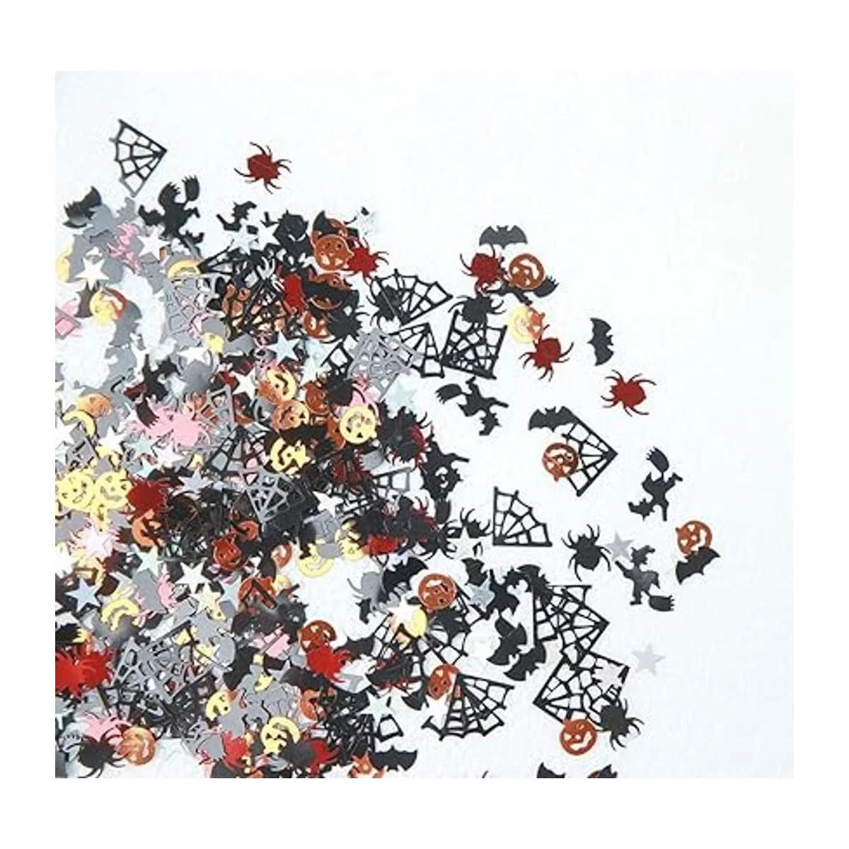 Topfunyy Confeti de Halloween con purpurina y calabazas, murciélagos, tela de araña, estrellas, lentejuelas metálicas para fiesta de Halloween