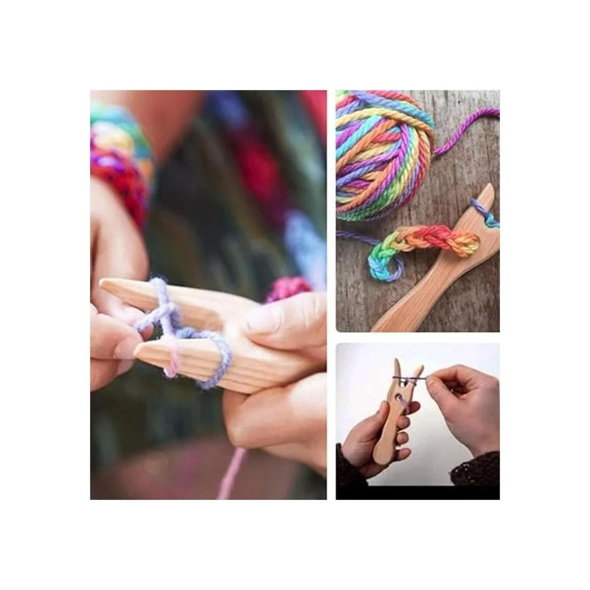 TOPINCN Kit de horquilla de tejer y aguja de ojo, cuerda de madera, horquilla de corte a mano, herramienta de cable antigua para tejedores y todos los artistas de fibra