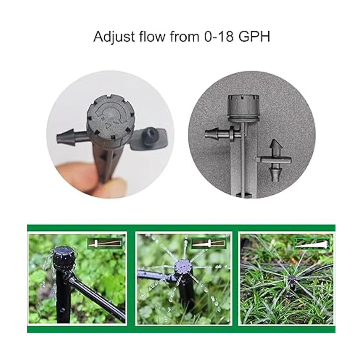 Topiverse 25 emisores de riego por goteo, flujo ajustable 018 GPH goteros de riego con estaca, cabezal de aspersión de flujo de 360 grados, micro aspersor para jardín, patio, césped, cama de flores