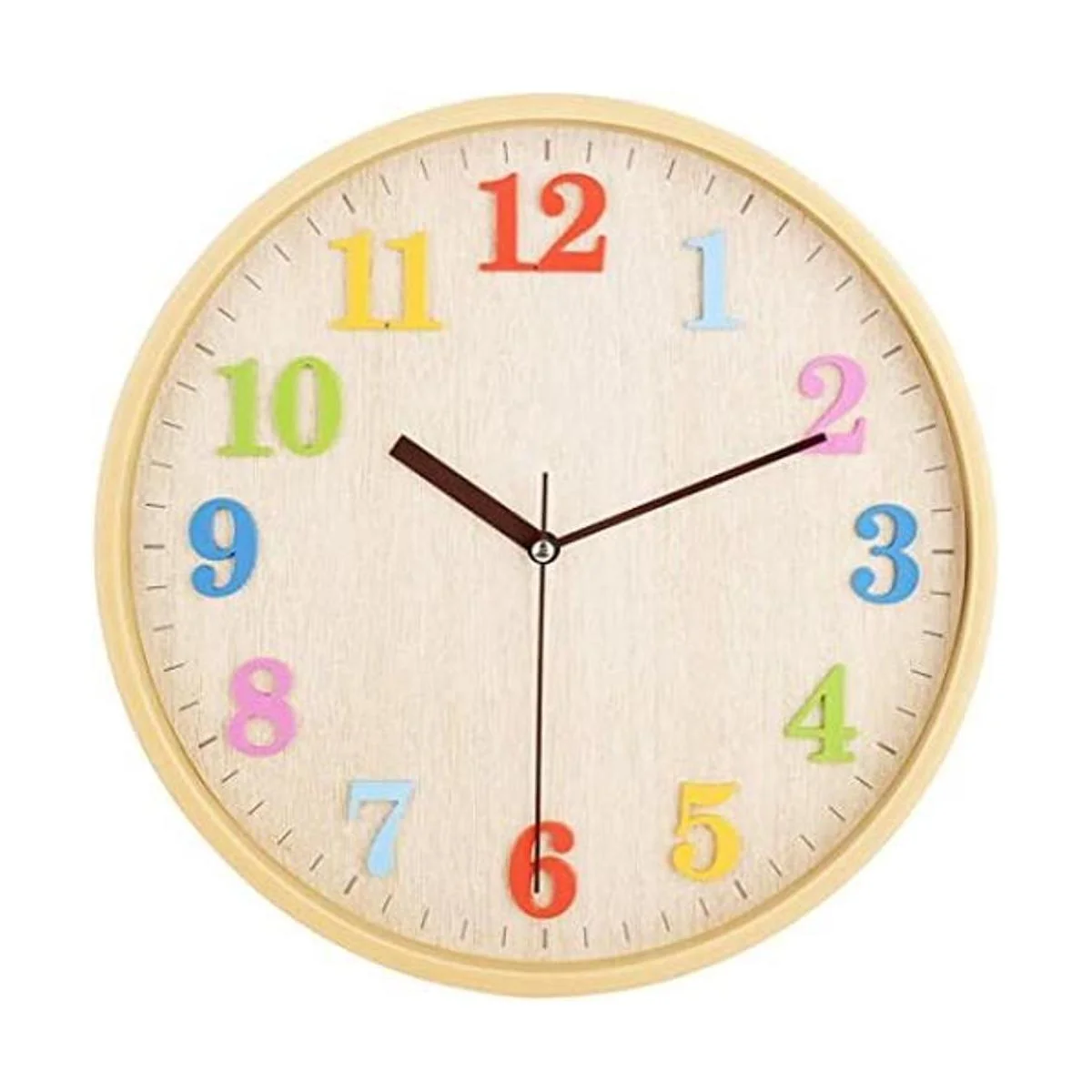 Reloj de pared silencioso con grandes números coloridos que garantizan una gran vista. Cubierta frontal de cristal plano para proteger del polvo limpio y los residuos.
