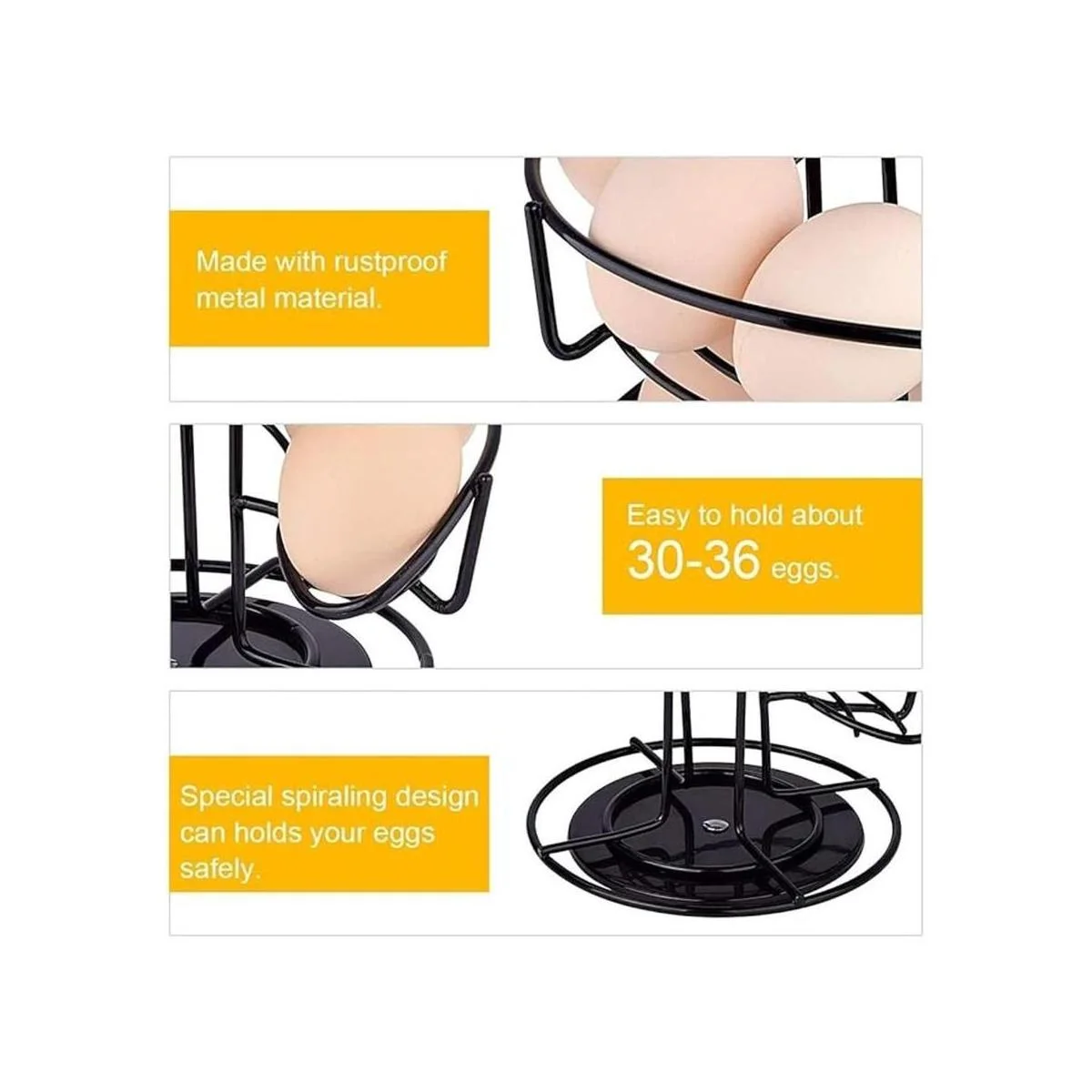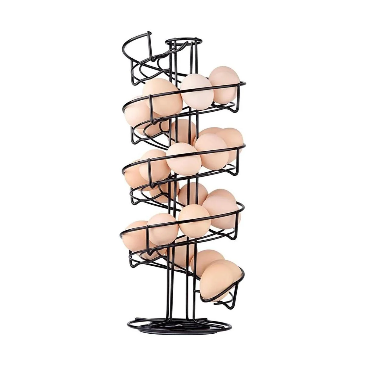 Toplife. Soporte de acero inoxidable diseño en espiral. Sirve como almacenador y despachador de huevos., Negro