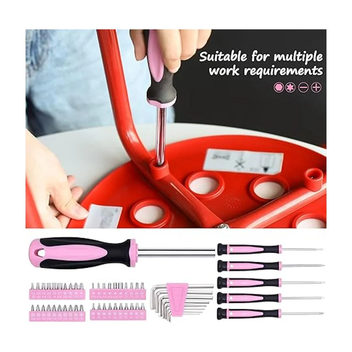 Este juego de herramientas para el hogar es el regalo perfecto para niñas. Materiales duraderos y agarres cómodos que proporcionan un trabajo relajado y esencial. El rosa es un bonito color que hace que la gente trabaje feliz.