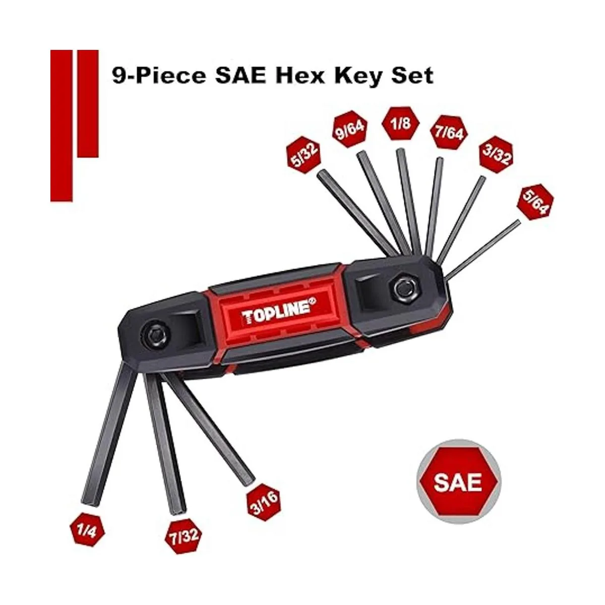 TOPLINE Juego de llaves Allen plegables de 25 piezas, SAE, métricas, juego de llaves hexagonales Torx incluidas, paquete de 3 llaves Allen portátiles para reparación básica del hogar y aplicaciones generales