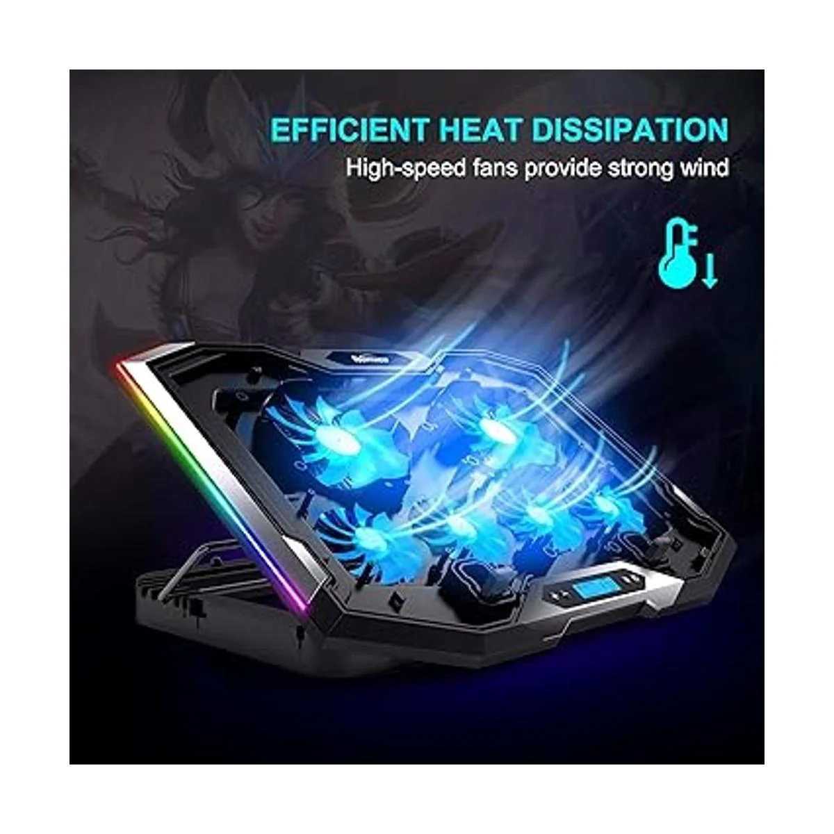 TopMate C11 Almohadilla de refrigeración para computadora portátil RGB, soporte para ventilador de portátil, altura ajustable con 6 ventiladores silenciosos y soporte para teléfono, alfombrilla para computadora portátil de 15.6 a 17.3 pulgadas, luz LED azul
