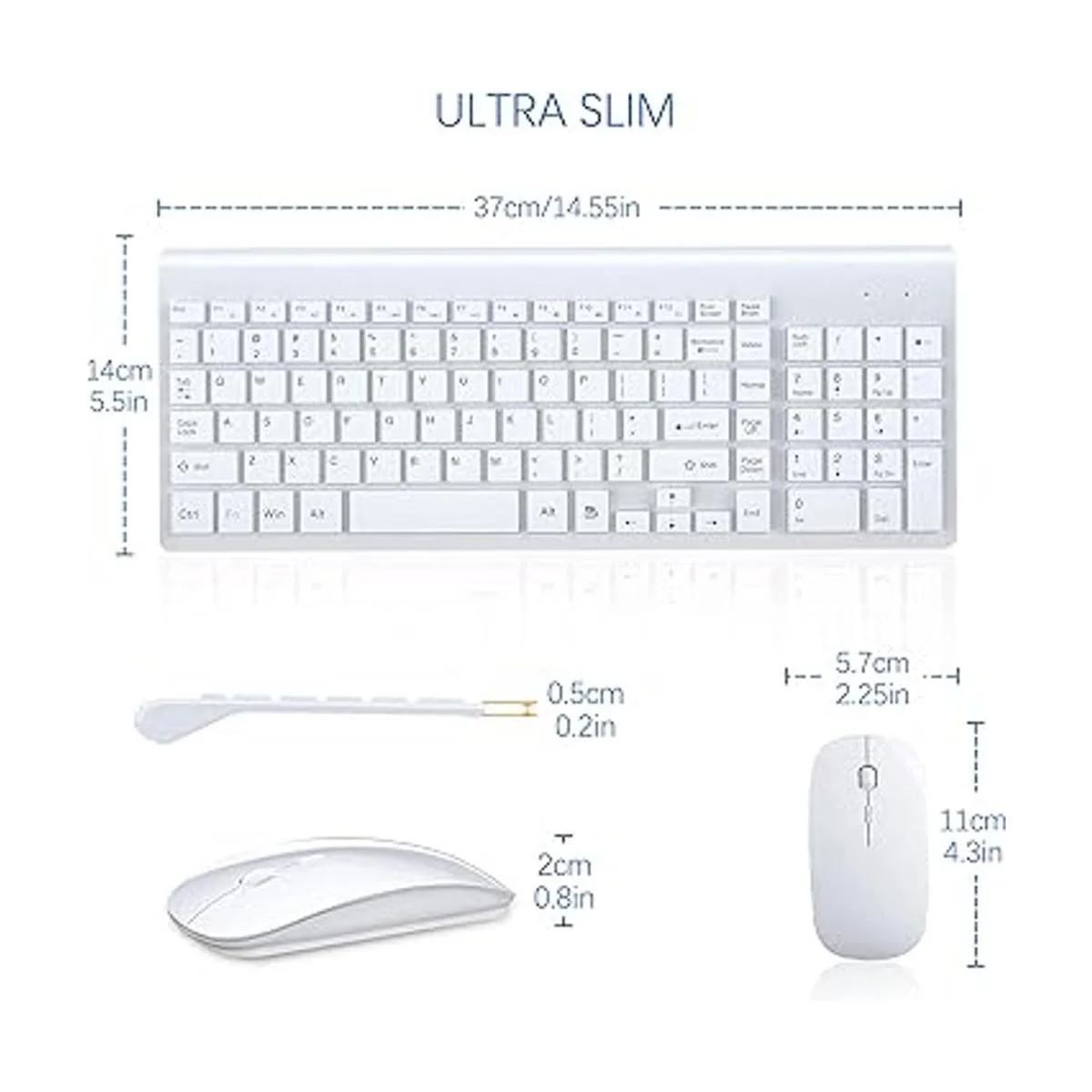 Topmate, mouse USB inalámbrico ultradelgado portátil y teclado inalámbrico Negro blanco, Blanco