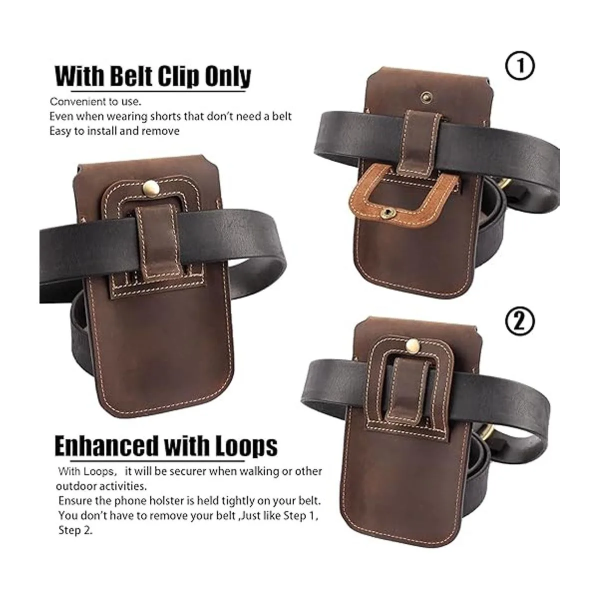 Fácil de transportar: la parte posterior del soporte para cinturón de teléfono celular para hombre incluye un clip de metal para cinturón y trabillas para cinturón con hebilla. La trabilla para cinturón de botón se puede llevar en la mayoría de cinturones mientras no requiere que te quites el cinturón. Un clip para cinturón se puede enganchar directamente a tu cinturón, pantalones, correas de mochila, etc. en cualquier lugar al que puedas llegar fácilmente. Ambas formas de transporte para permitirte fijar rápida y fácilmente la bolsa del teléfono celular a tu cinturón o pantalones.