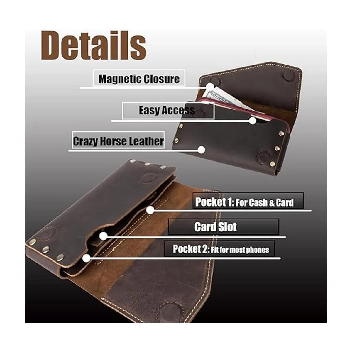 Bolsa de piel para teléfono: esta funda de piel para teléfono celular está hecha a mano con cuero natural de alta calidad, costuras finas y ajustadas. El cuero Crazy Horse es fácil de limpiar, resistente a los arañazos, grueso y duradero, el color de la superficie cambiará gradualmente y se volverá único con el tiempo.