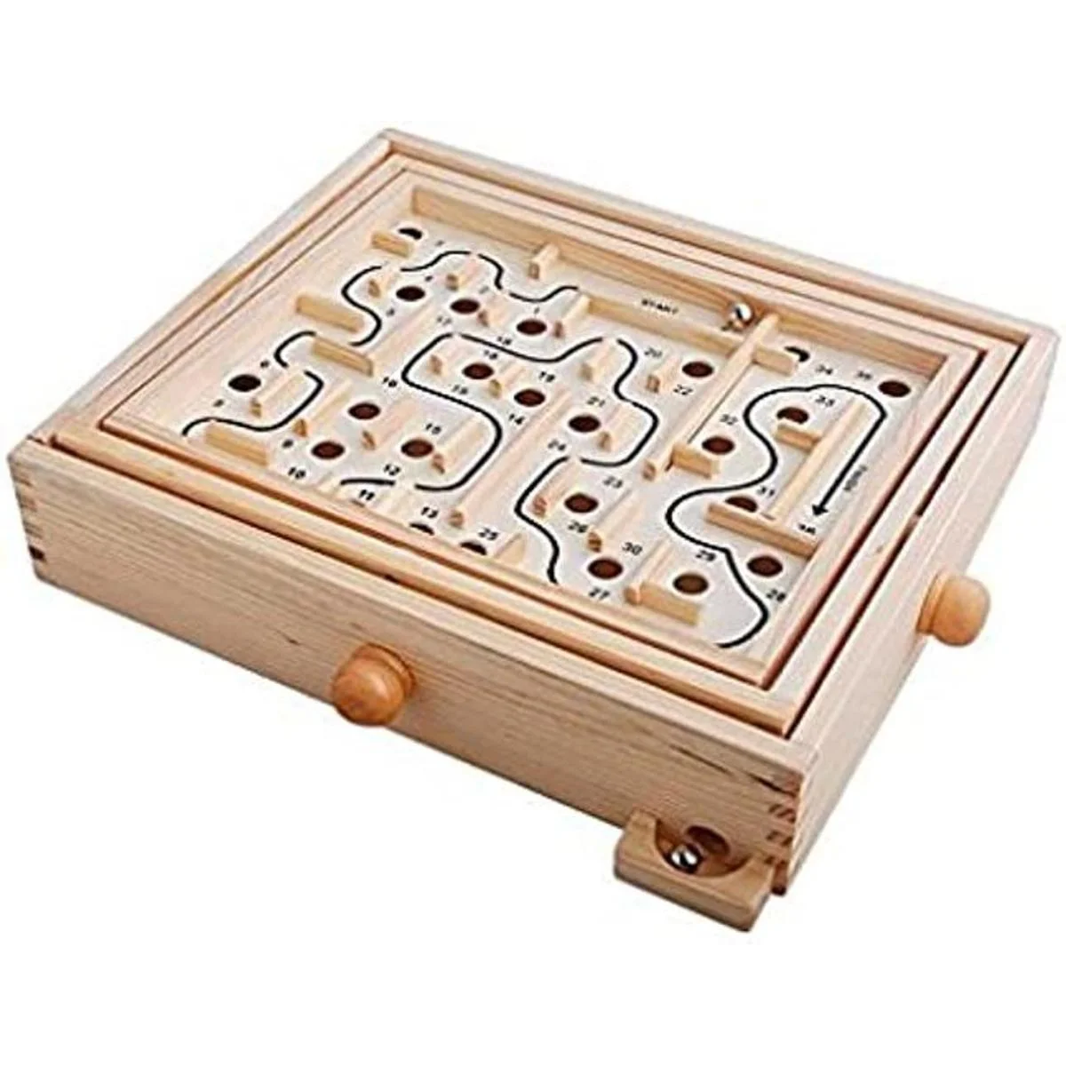 Topwon Mesa de laberinto de madera para laberinto, juego solitario para niños y adultos, gran regalo