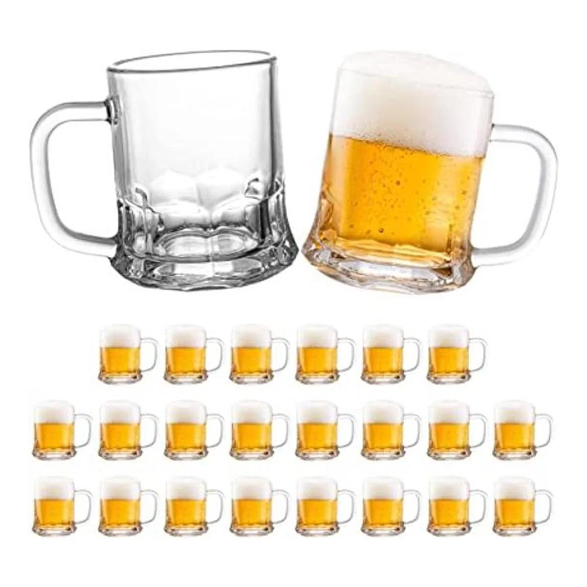 TOPZEA Juego de 24 mini tazas de cerveza, taza de cerveza Mason de 5 onzas, vasos de cerveza para congelador, vasos de cerveza de base pesada, vasos de vidrio, vasos para beber bebidas con asa
