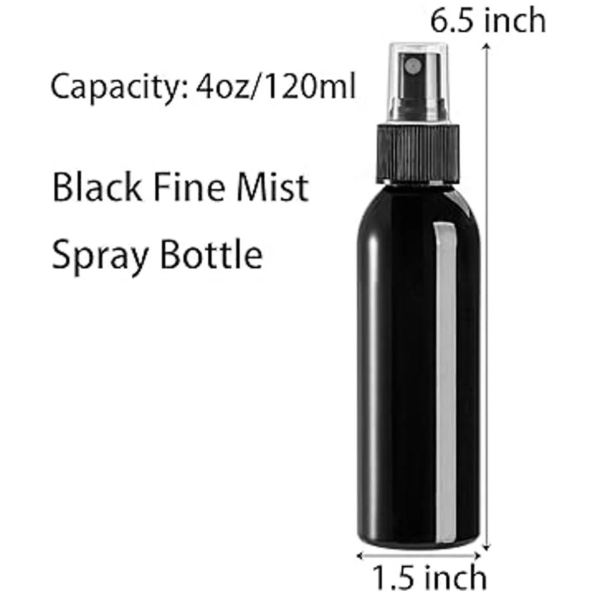 Capacidad: 4.1 fl oz, el tamaño total: 1.5 pulgadas de diámetro x 6.5 pulgadas de alto. El tamaño de los pulverizadores es realmente práctico y portátil, fácil de poner en tu bolsa o bolsa, la parte superior se ajusta perfectamente y viene con tapas transparentes a prueba de polvo para que no se filtren fácilmente durante el viaje y mantengan la boquilla limpia.