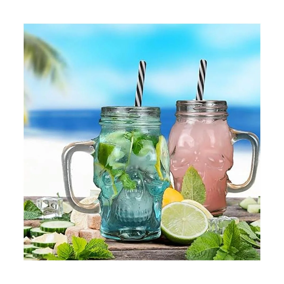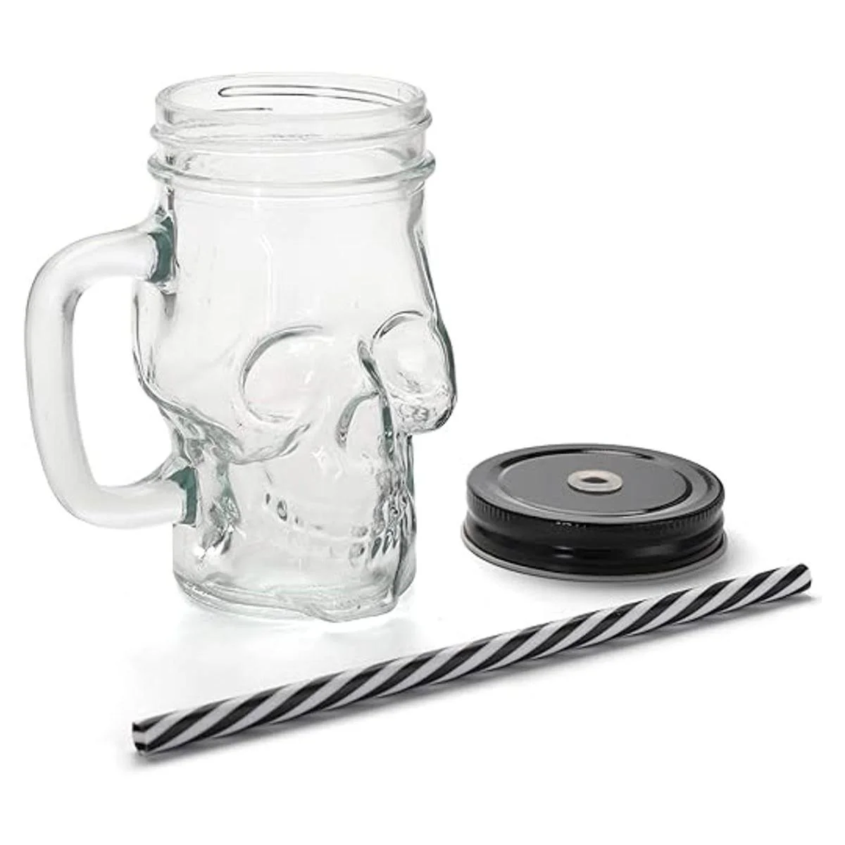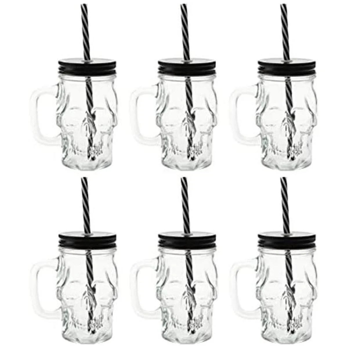 TOPZEA Paquete de 6 tarros de vidrio Mason con asa, tazas de cerveza de calavera de 16 onzas, vaso de boca ancha con pajitas, tazas de bar de pub para bebidas, licor, bebidas frías
